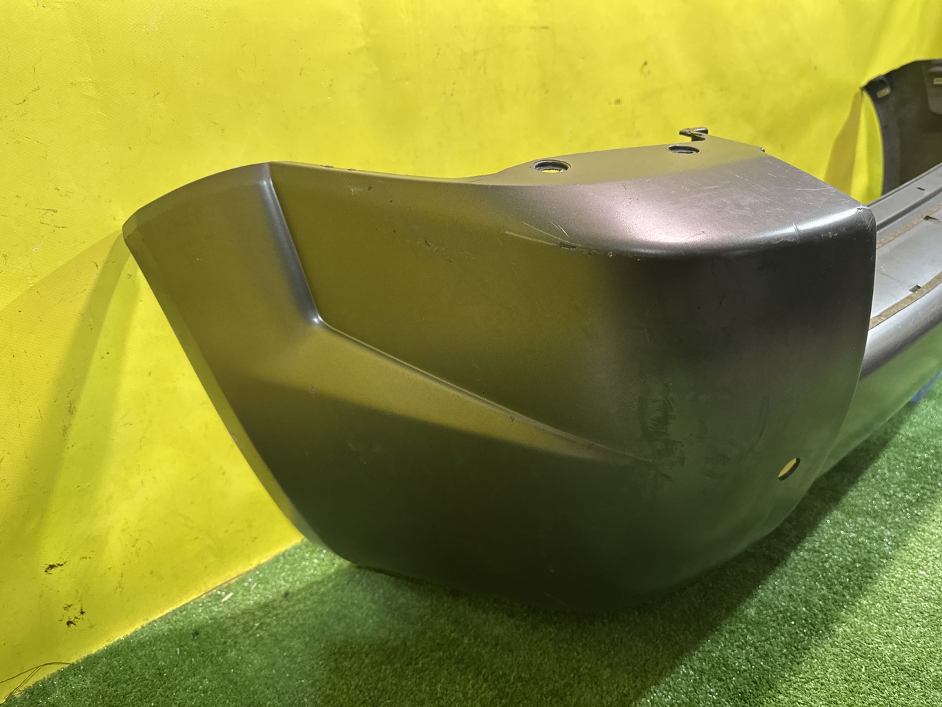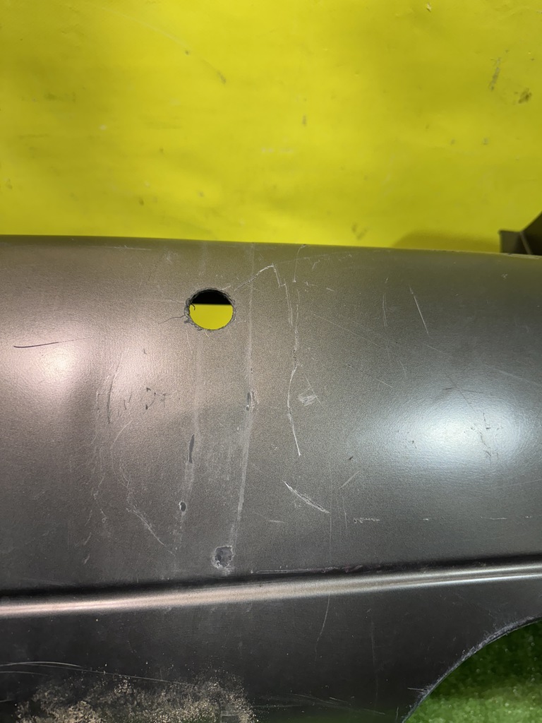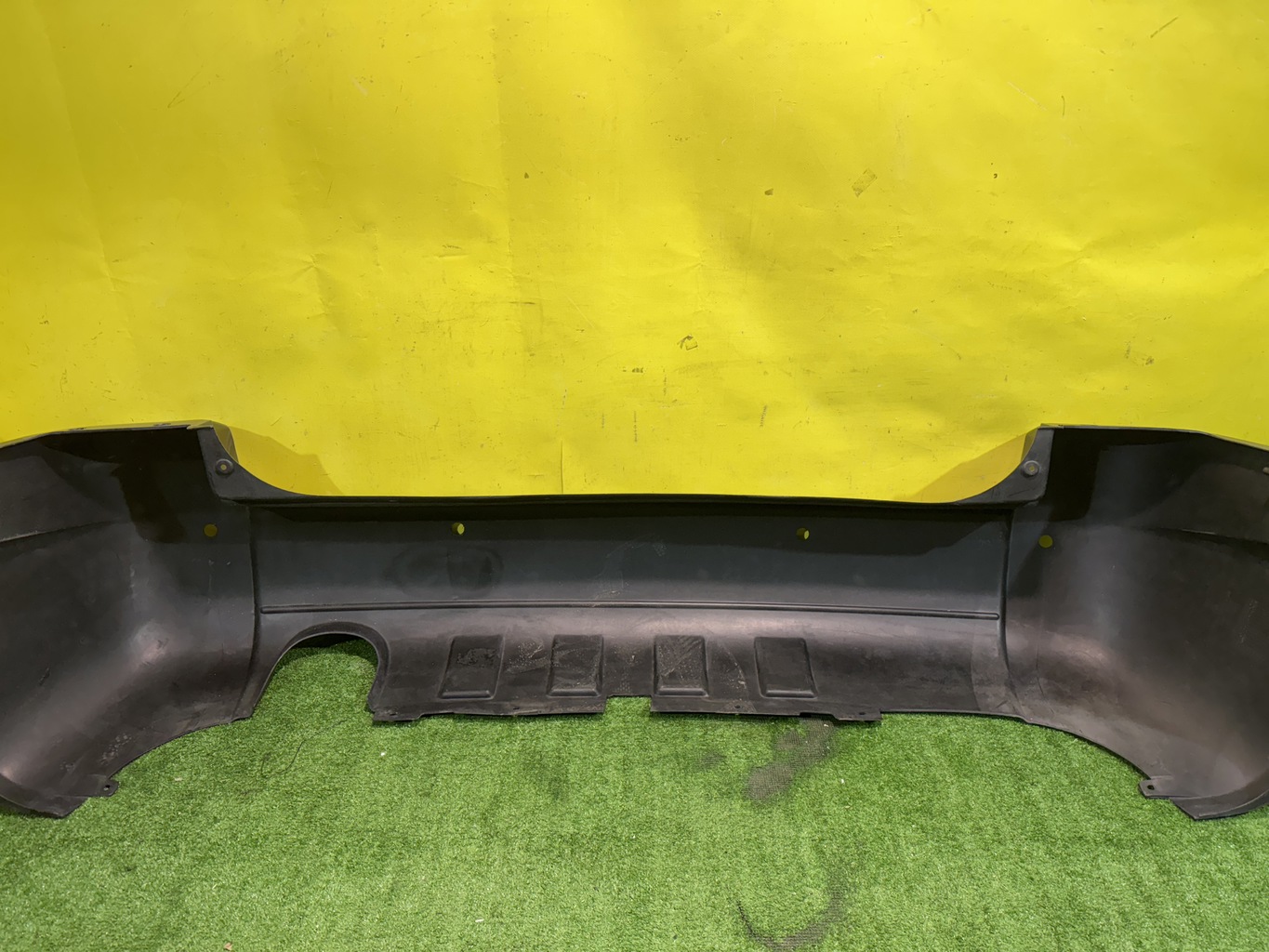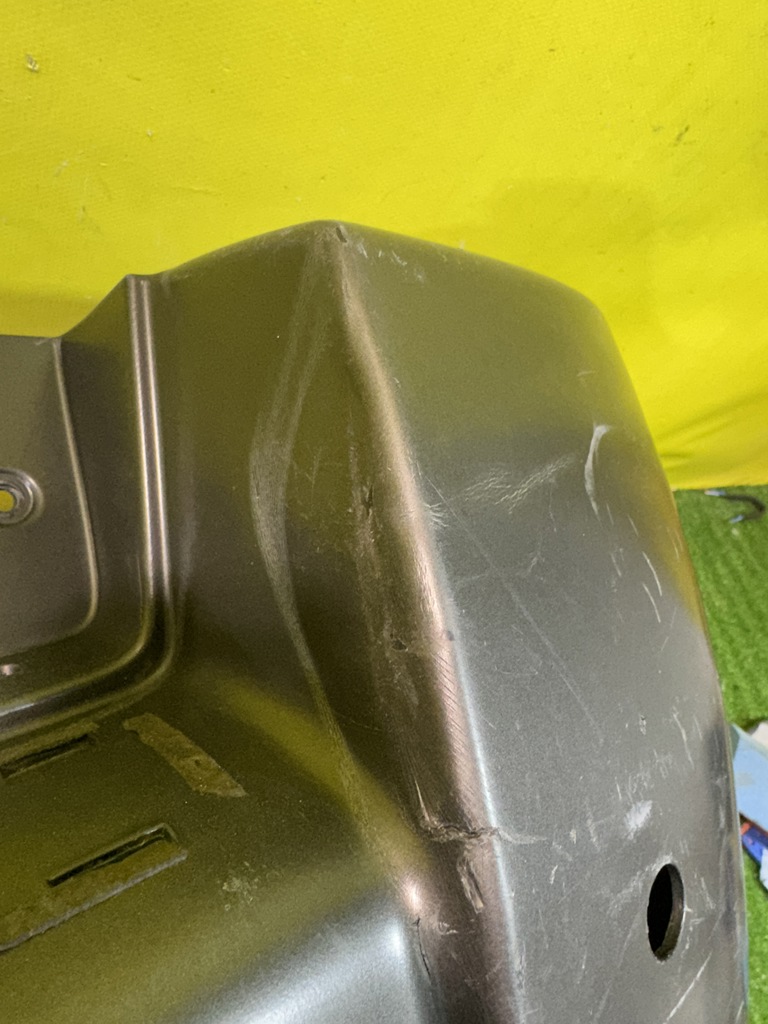 С отверстиями под парктроники, под одну трубу глушителя. Имеет царапины, примятости (фото 4, 5 и 6).