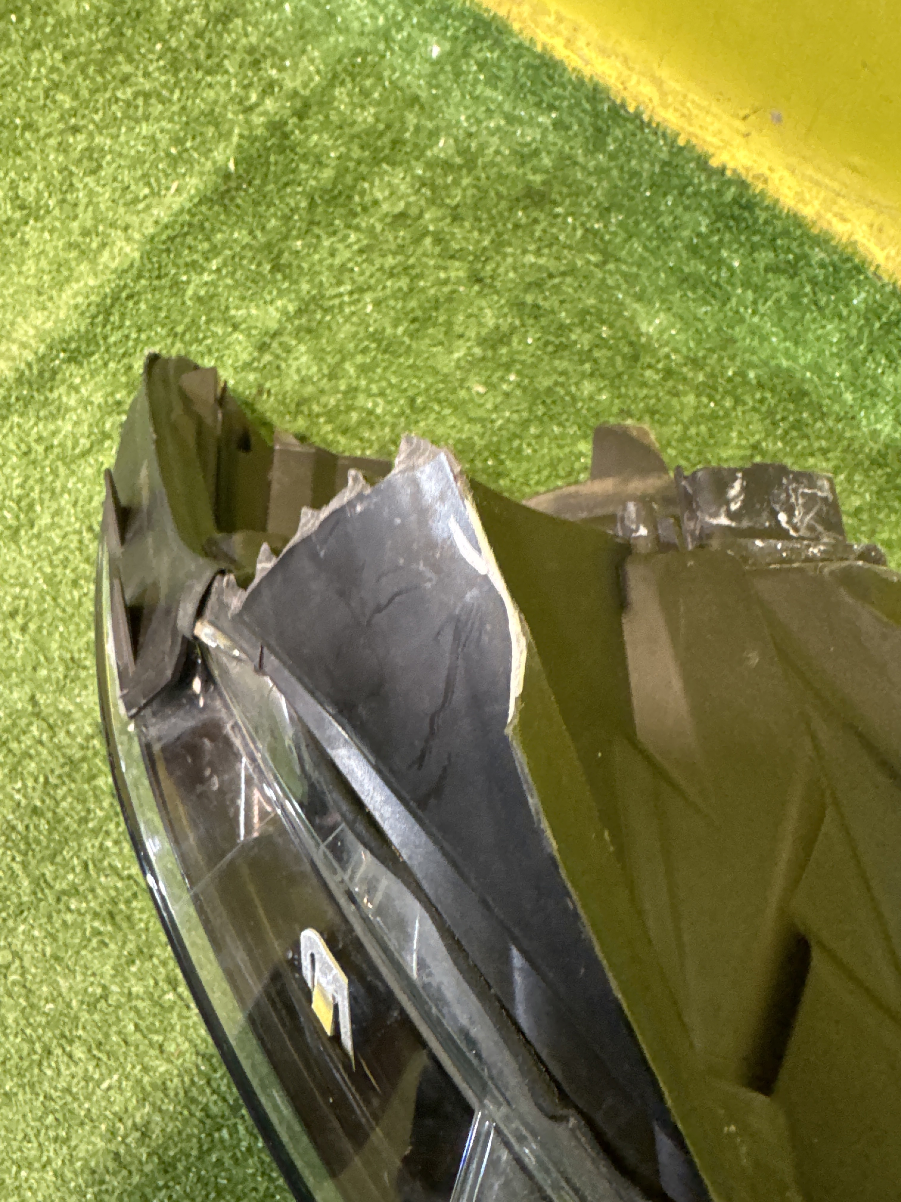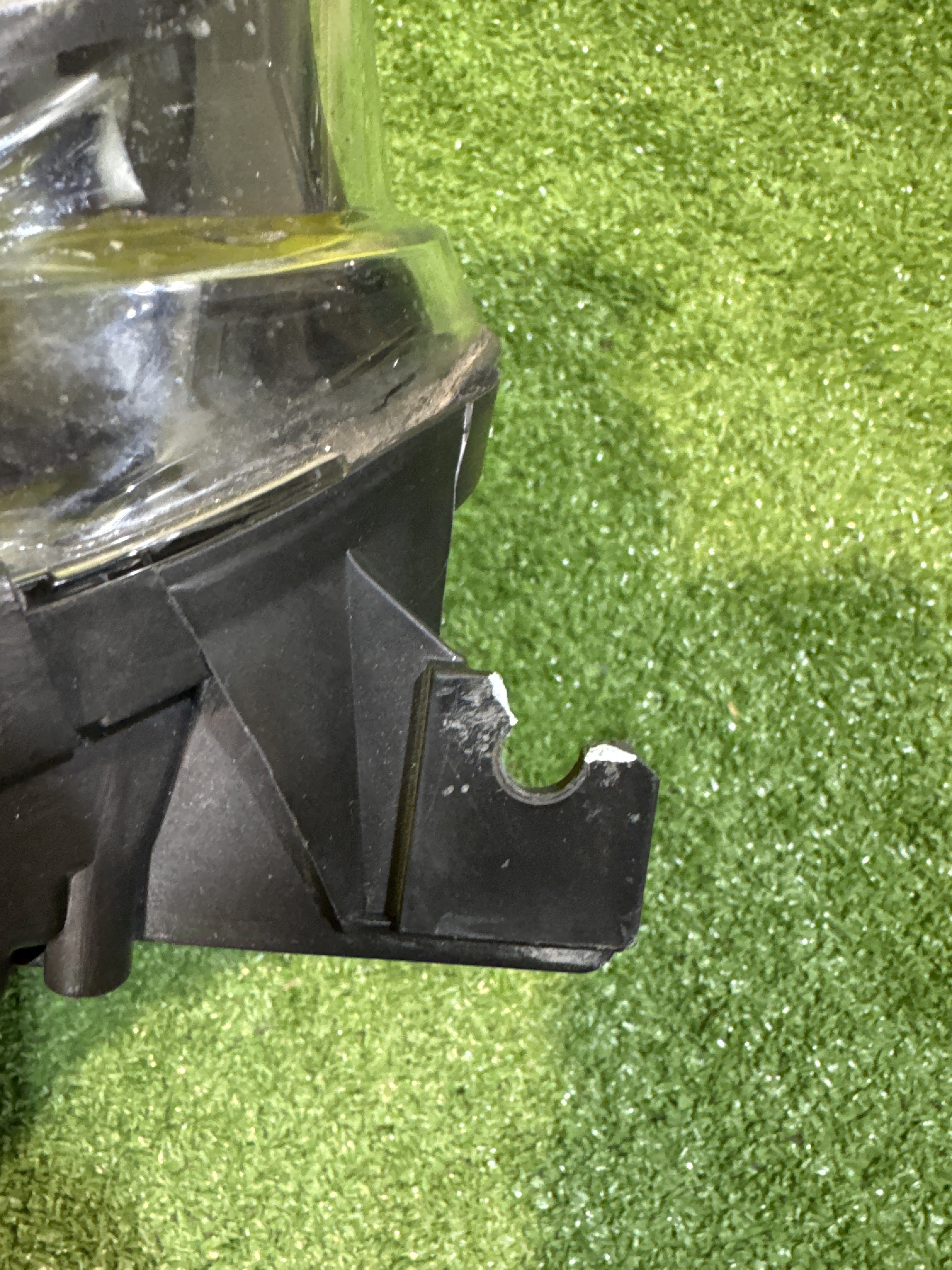 Галоген - линза. Имеет трещину на корпусе, отсутствуют три крепления (фото 4, 5 и 6).