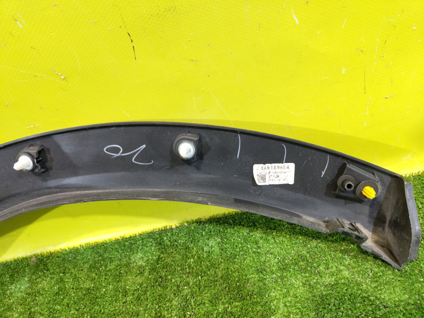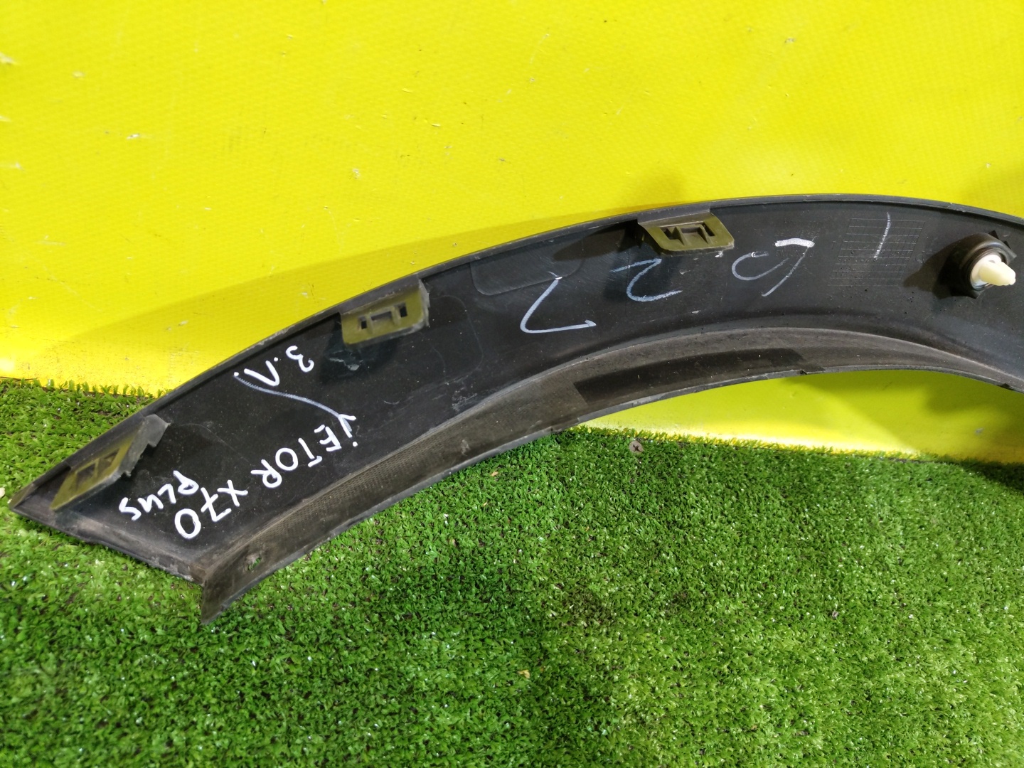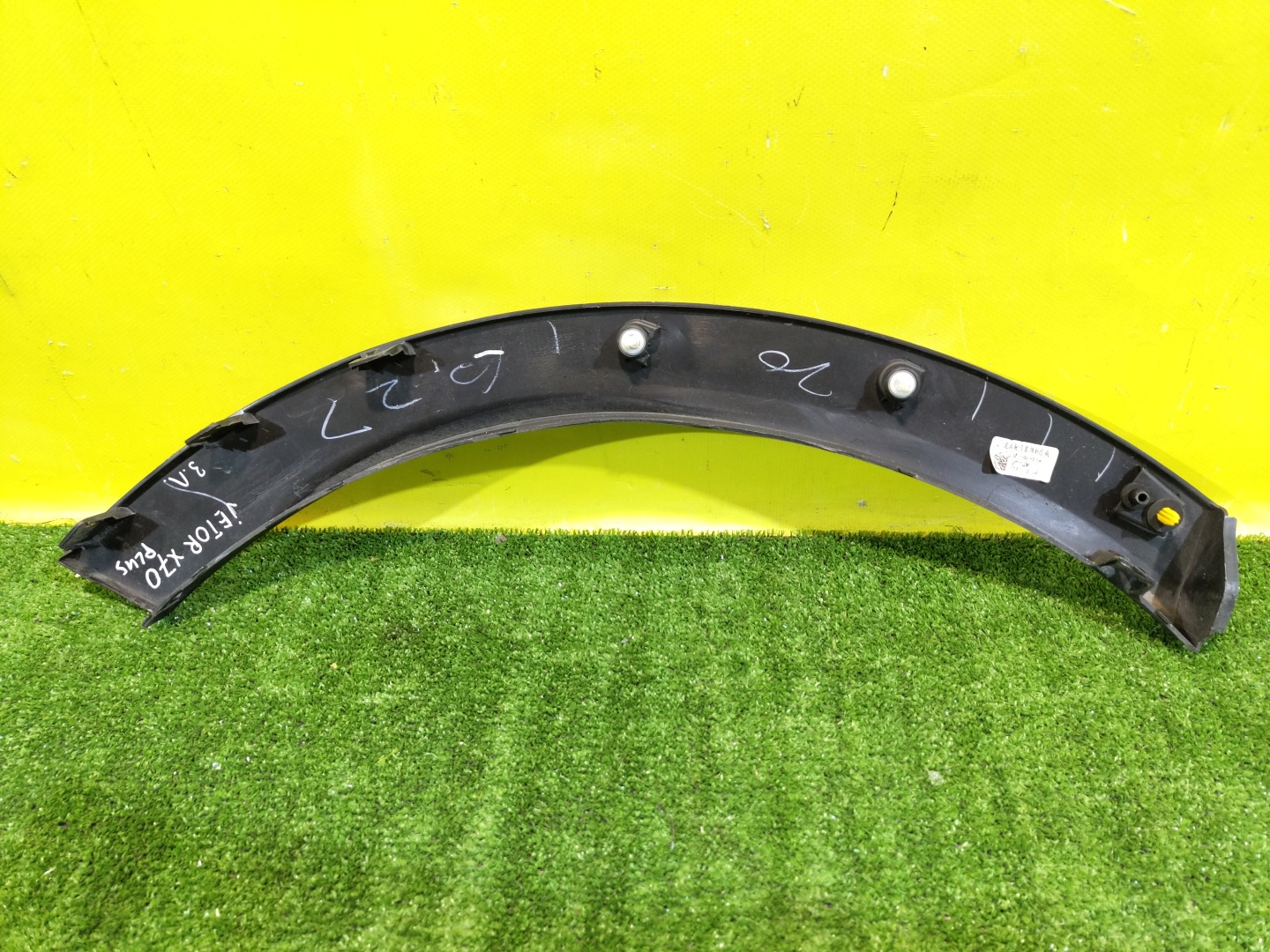 Имеет царапины (фото 2,3,4). Имеет трещину (фото 5). С крыла на бампер.