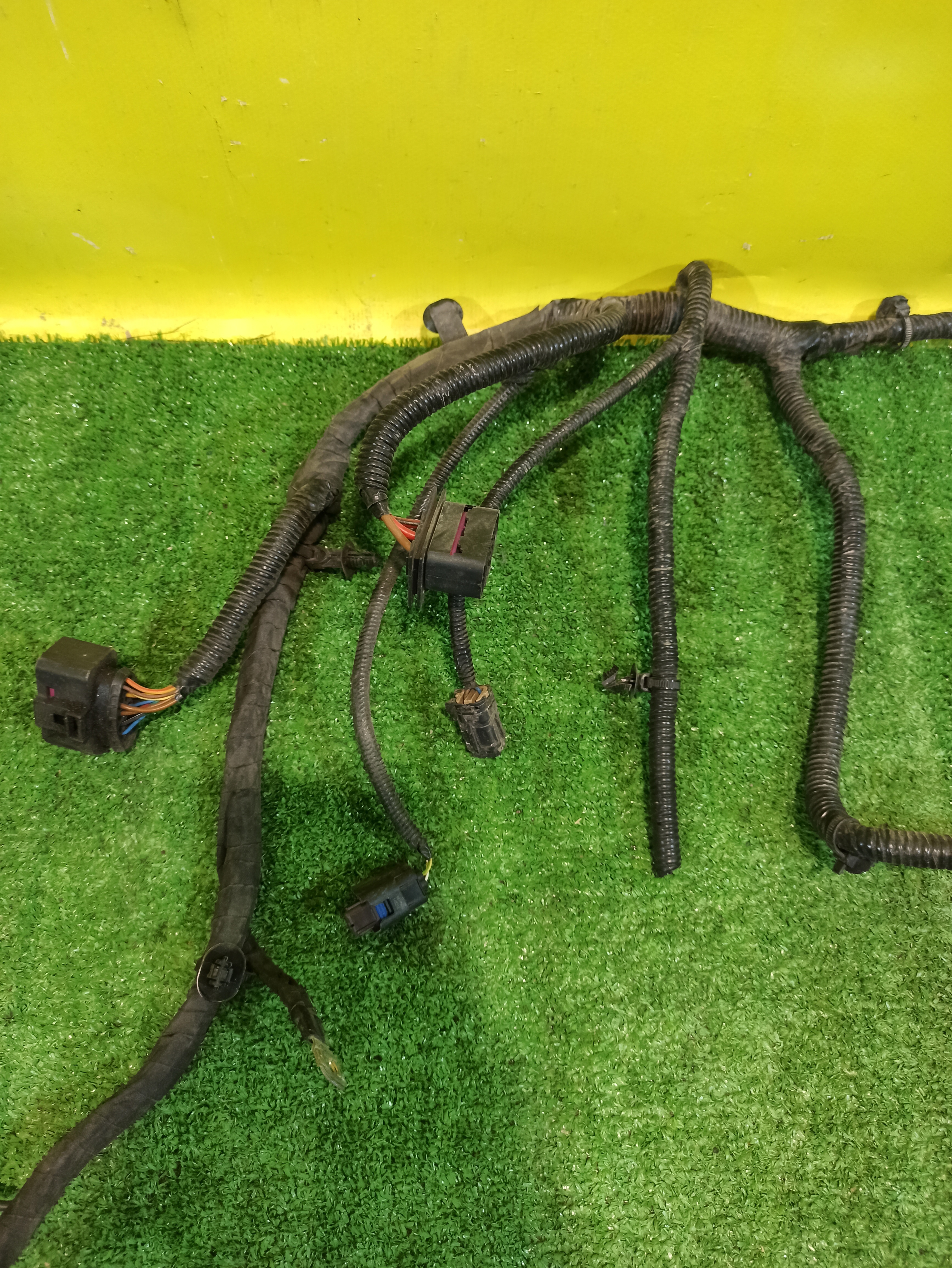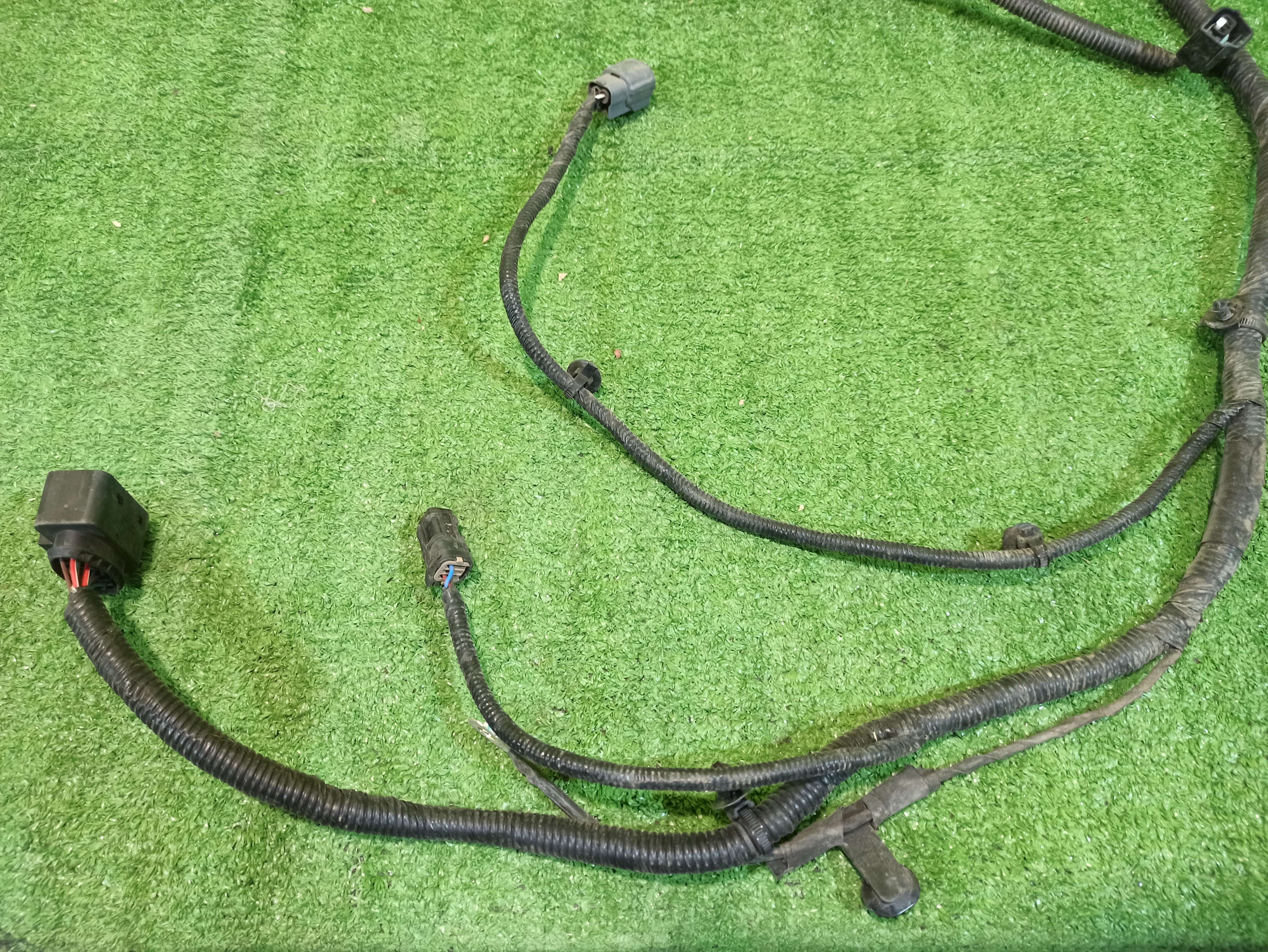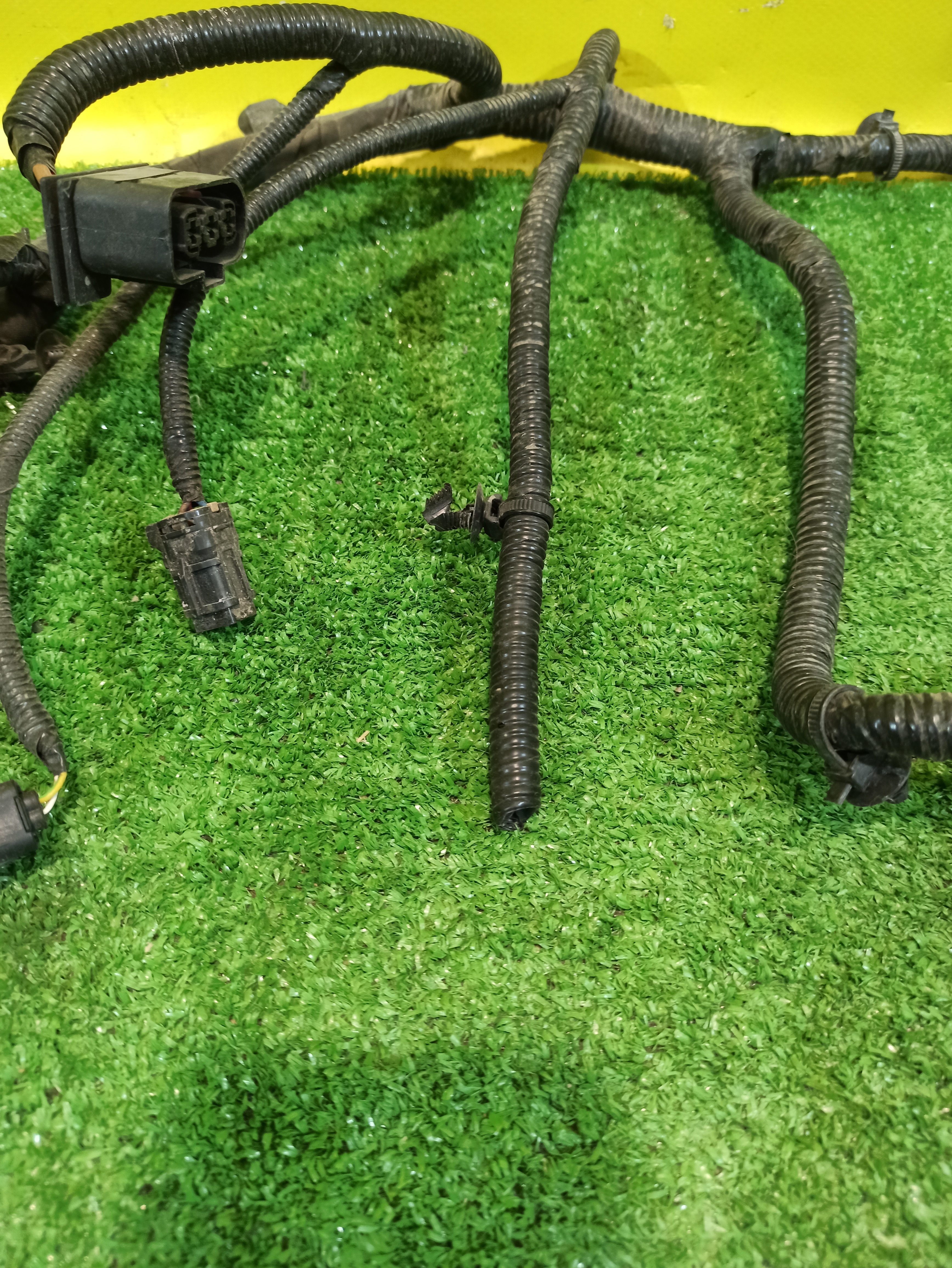 Проводка переднего бампера (фары, парктроники, камера...). Имеет дефект (фото 3 и 4).