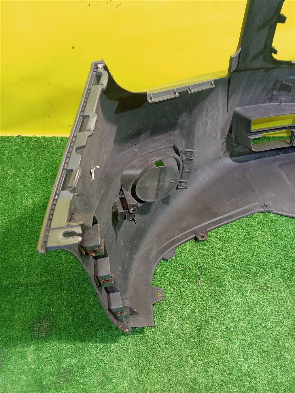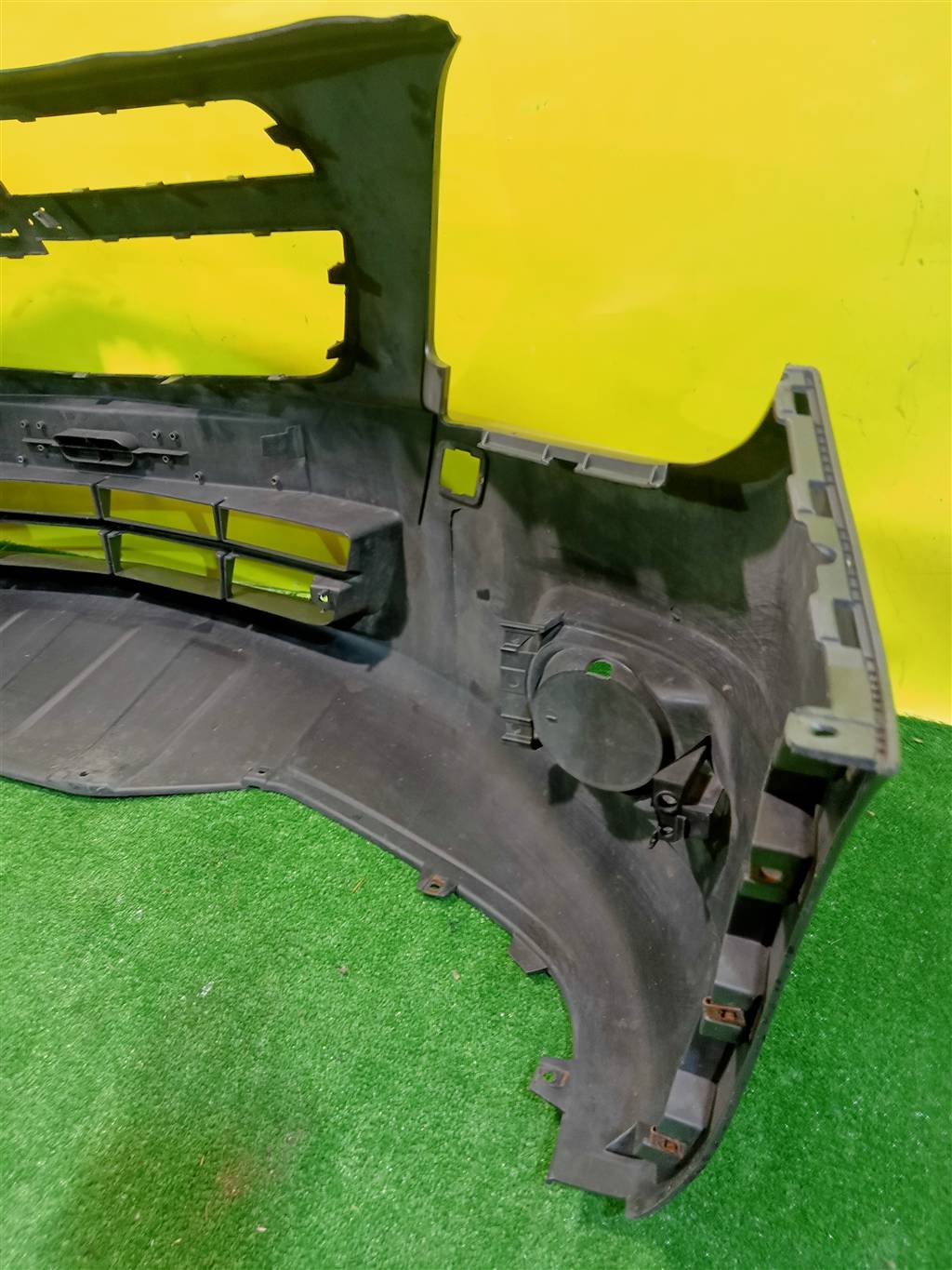Без отверстий под парктроники, не под ПТФ. Имеет царапины.