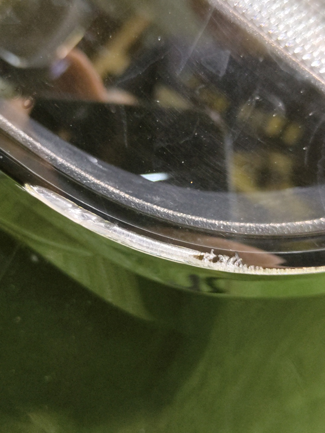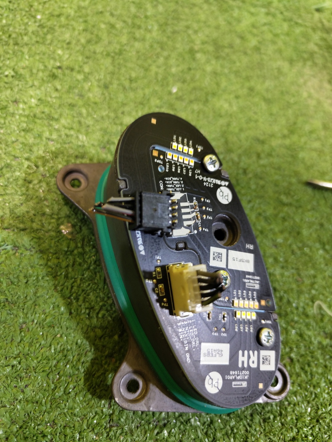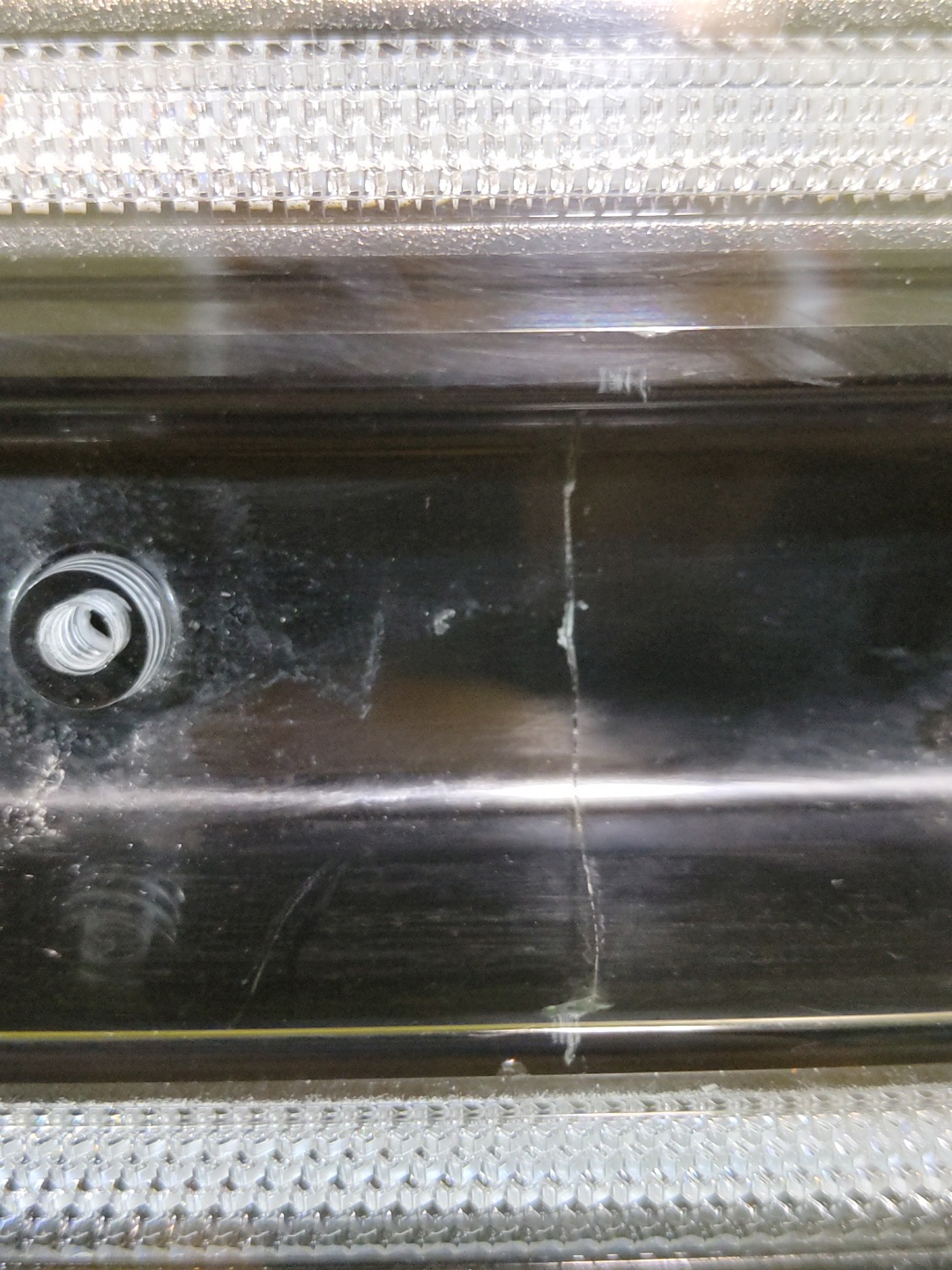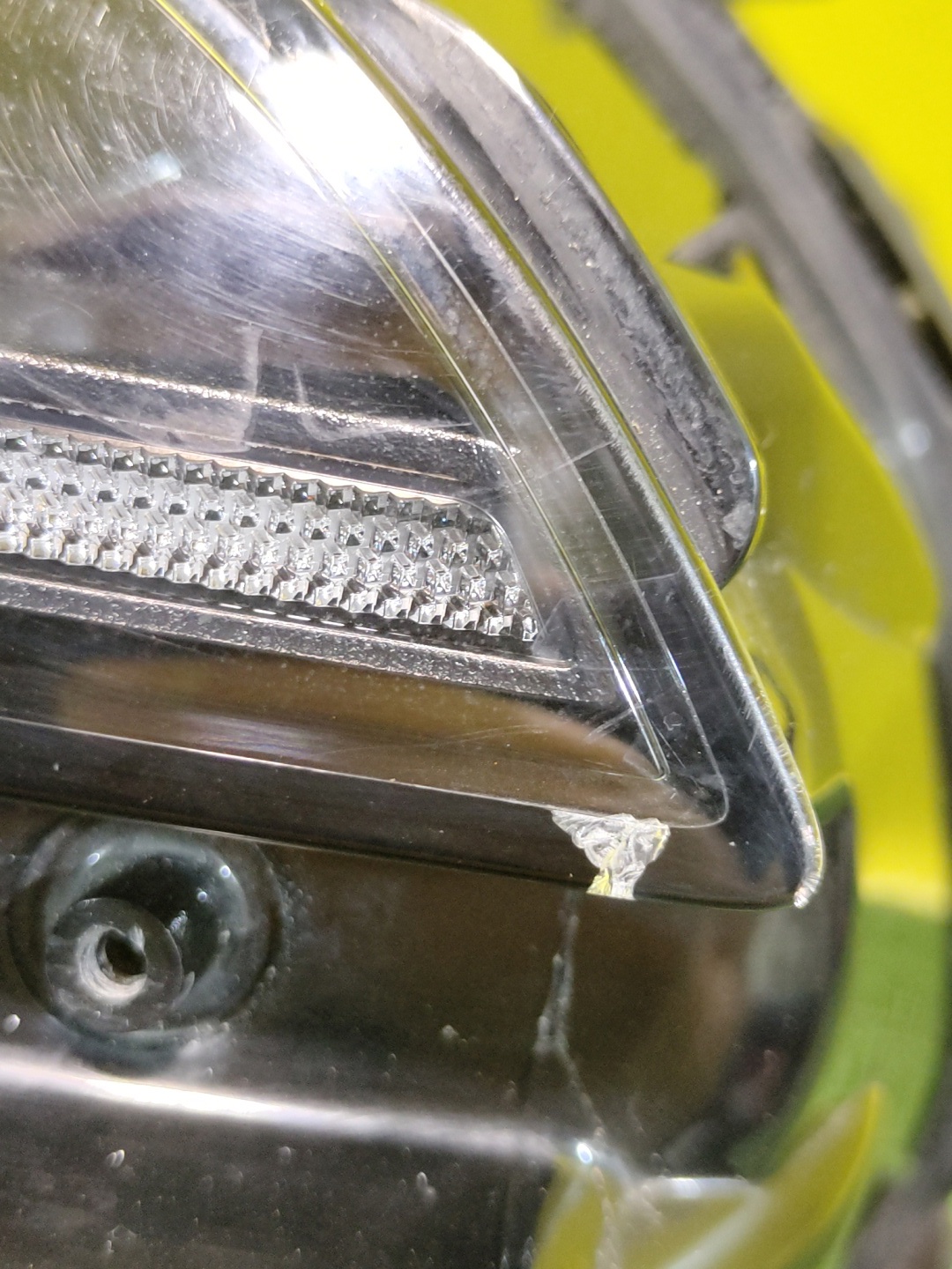 Имеет трещину, сколы. Дефект светодиодного модуля (фото 8 и 9).