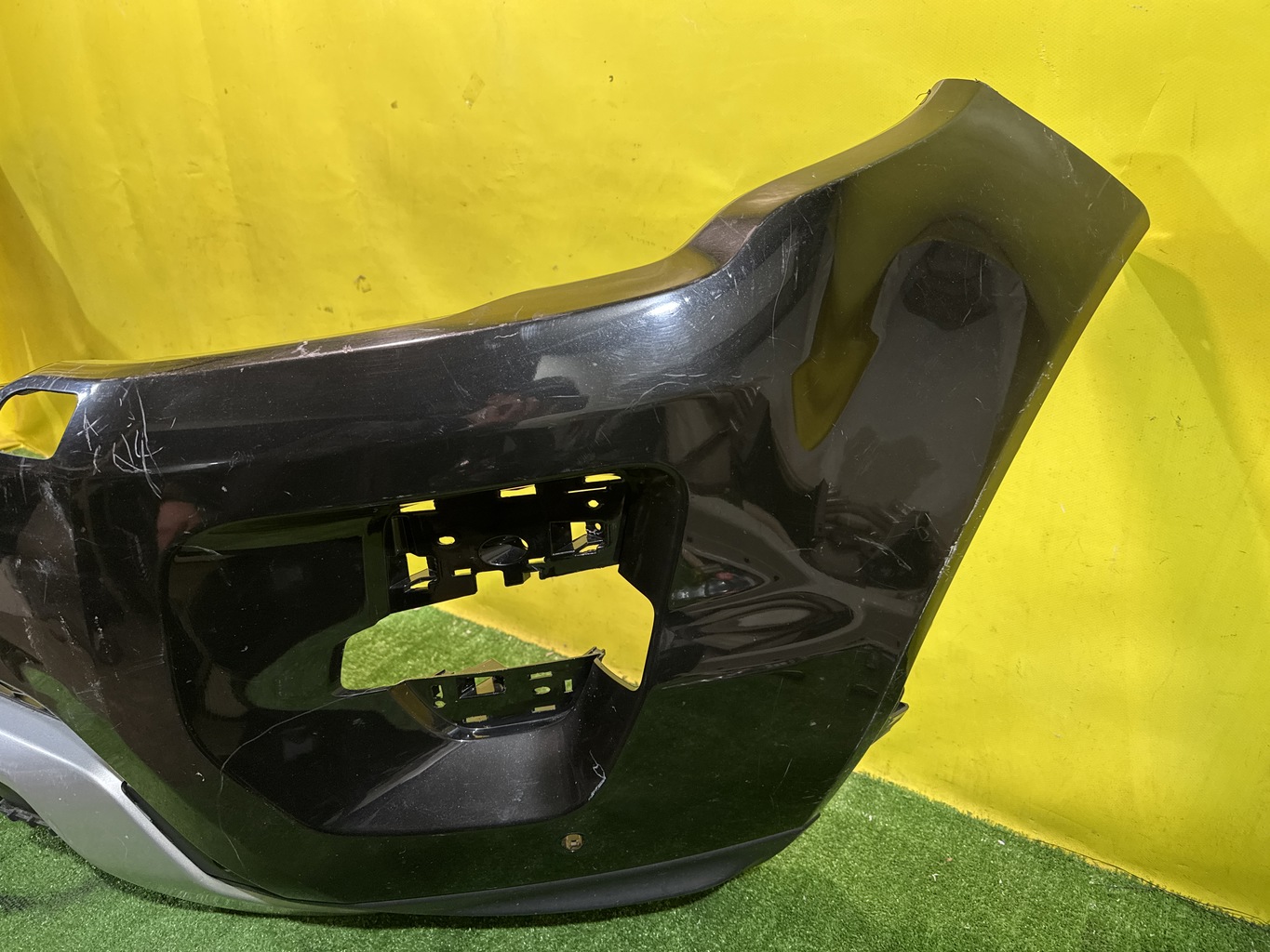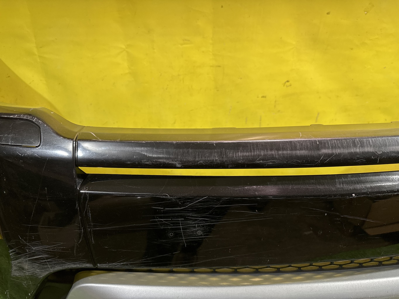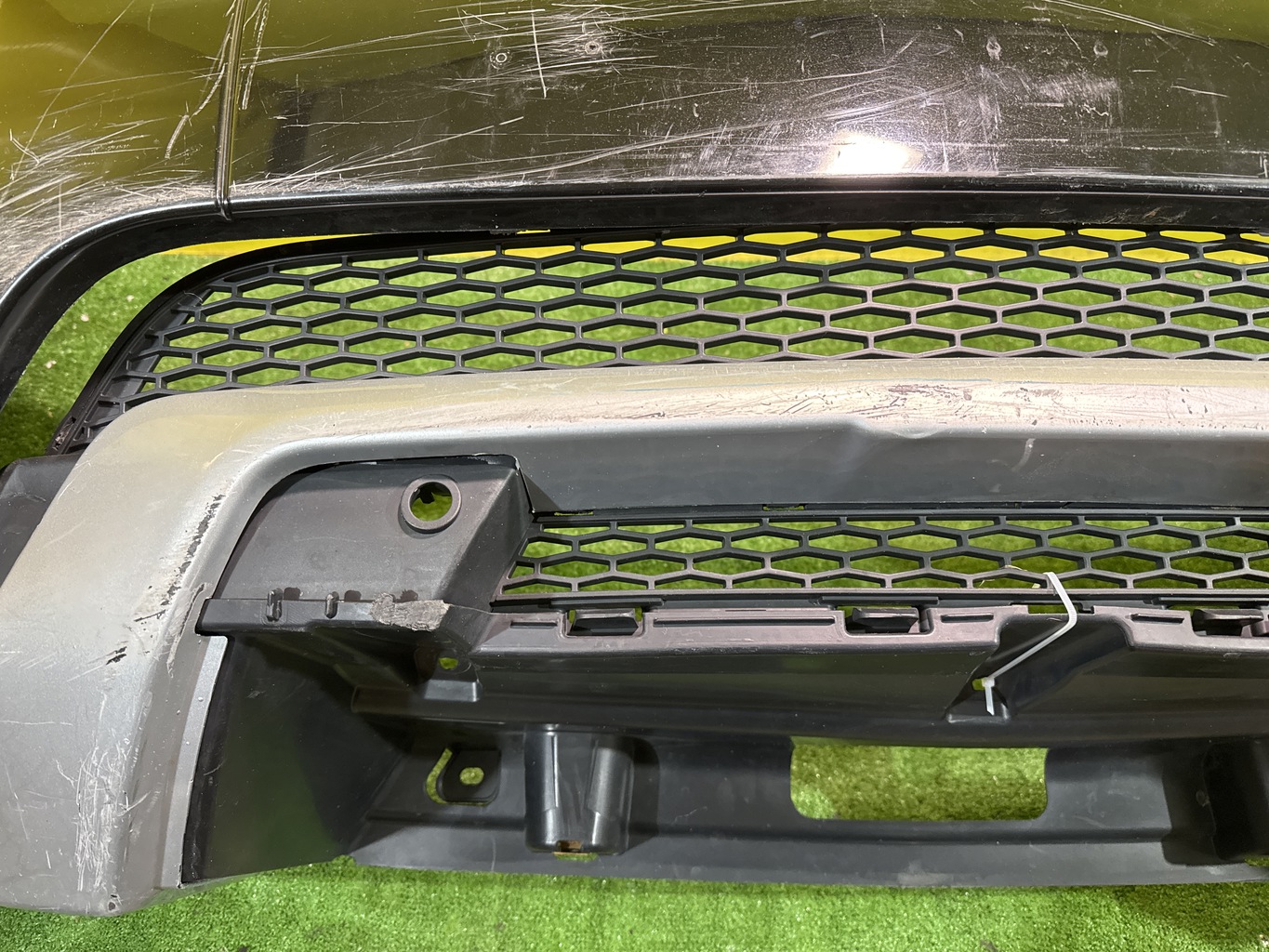 С отверстиями под парктроники. Имеет царапины, притертости и дефекты креплений решетки (фото 4, 5, 6 и 7).