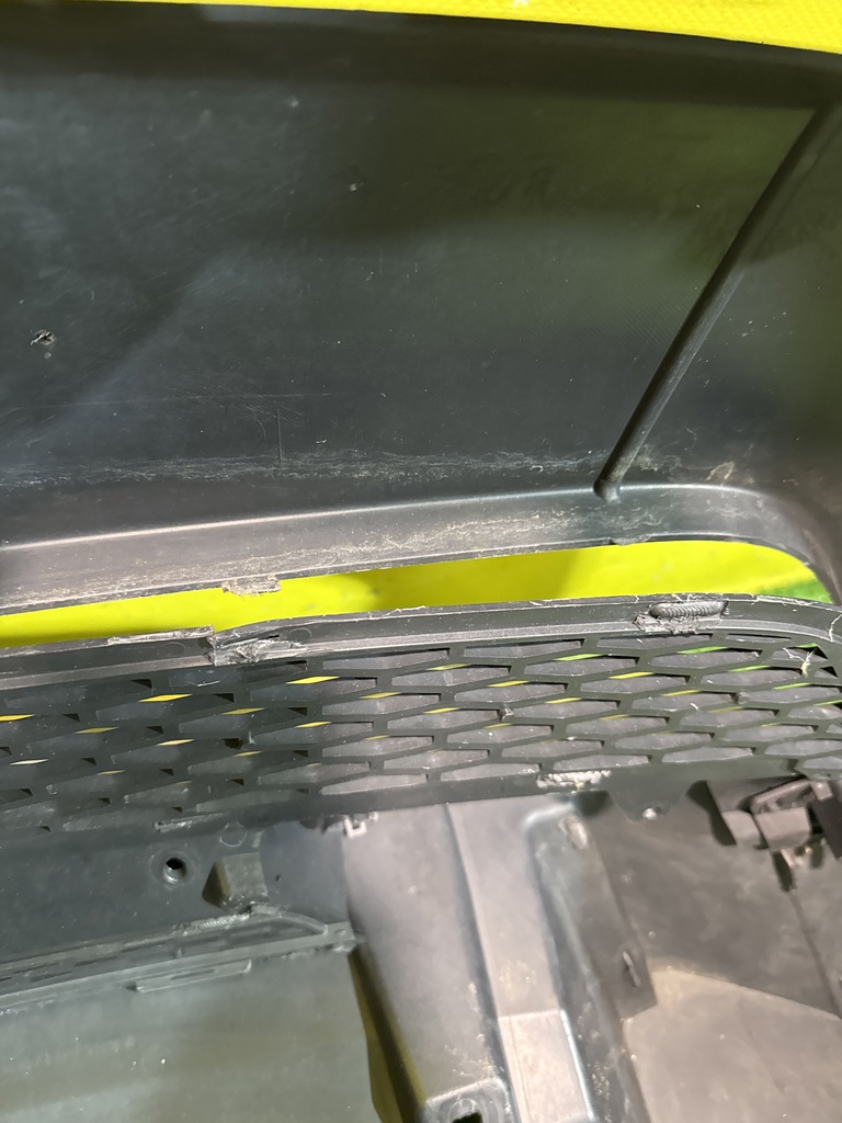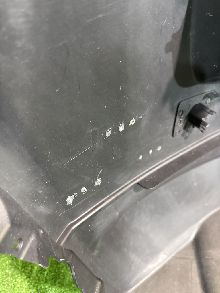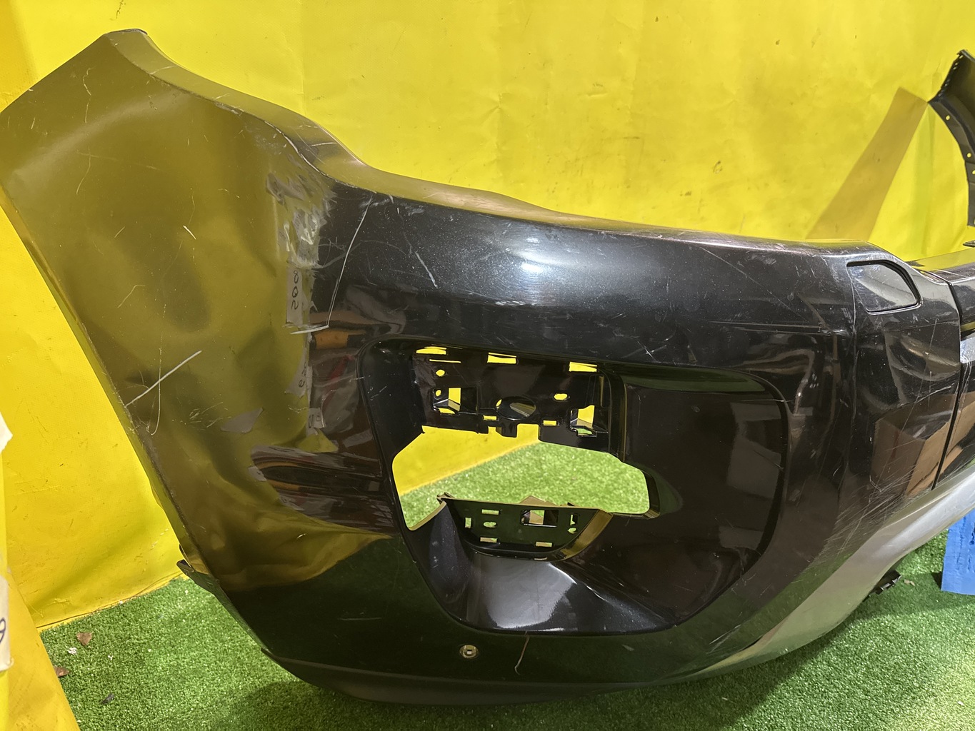 С отверстиями под парктроники. Имеет царапины, притертости и дефекты креплений решетки (фото 4, 5, 6 и 7).