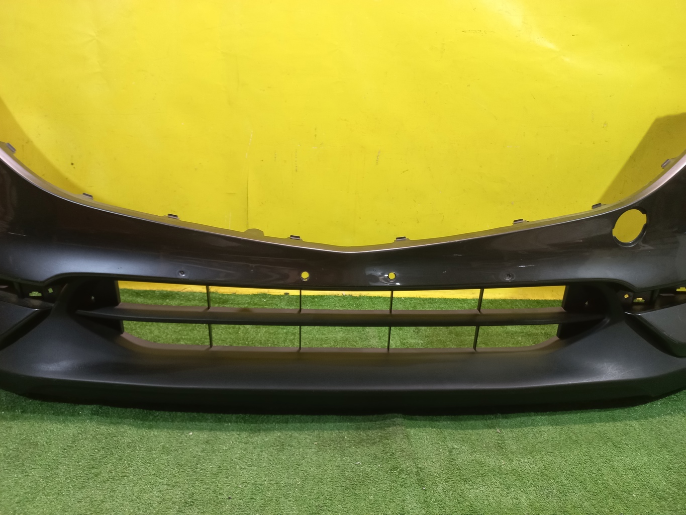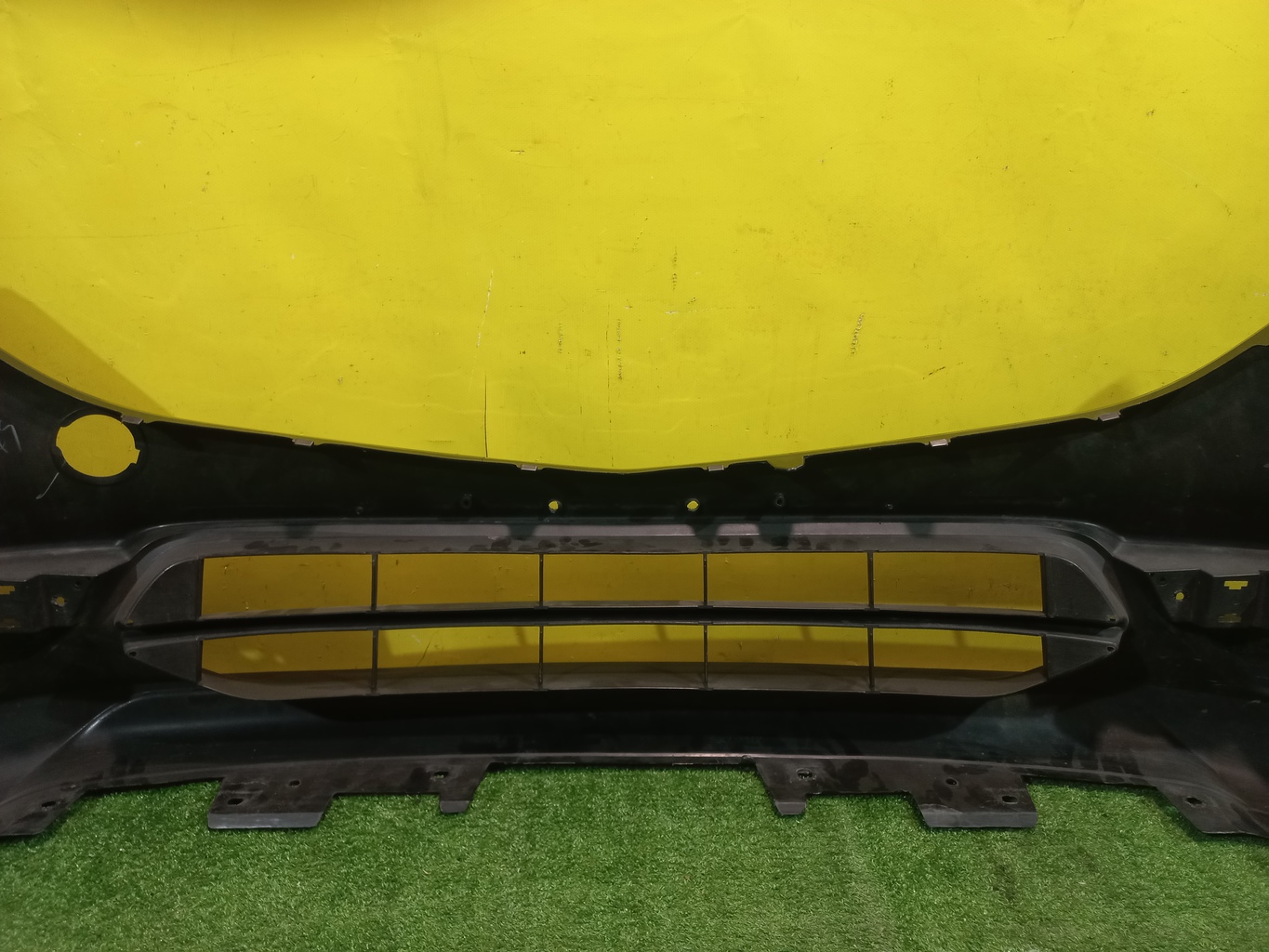 С отверстиями под омыватели фар, без отверстий под парктроники. Имеет притертости, царапины (фото 5, 6 и 7).