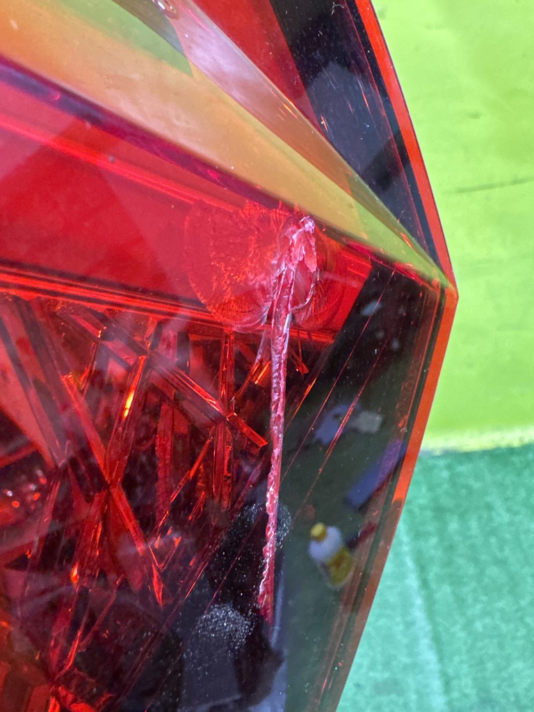 Имеет трещину (фото 4 и 5).