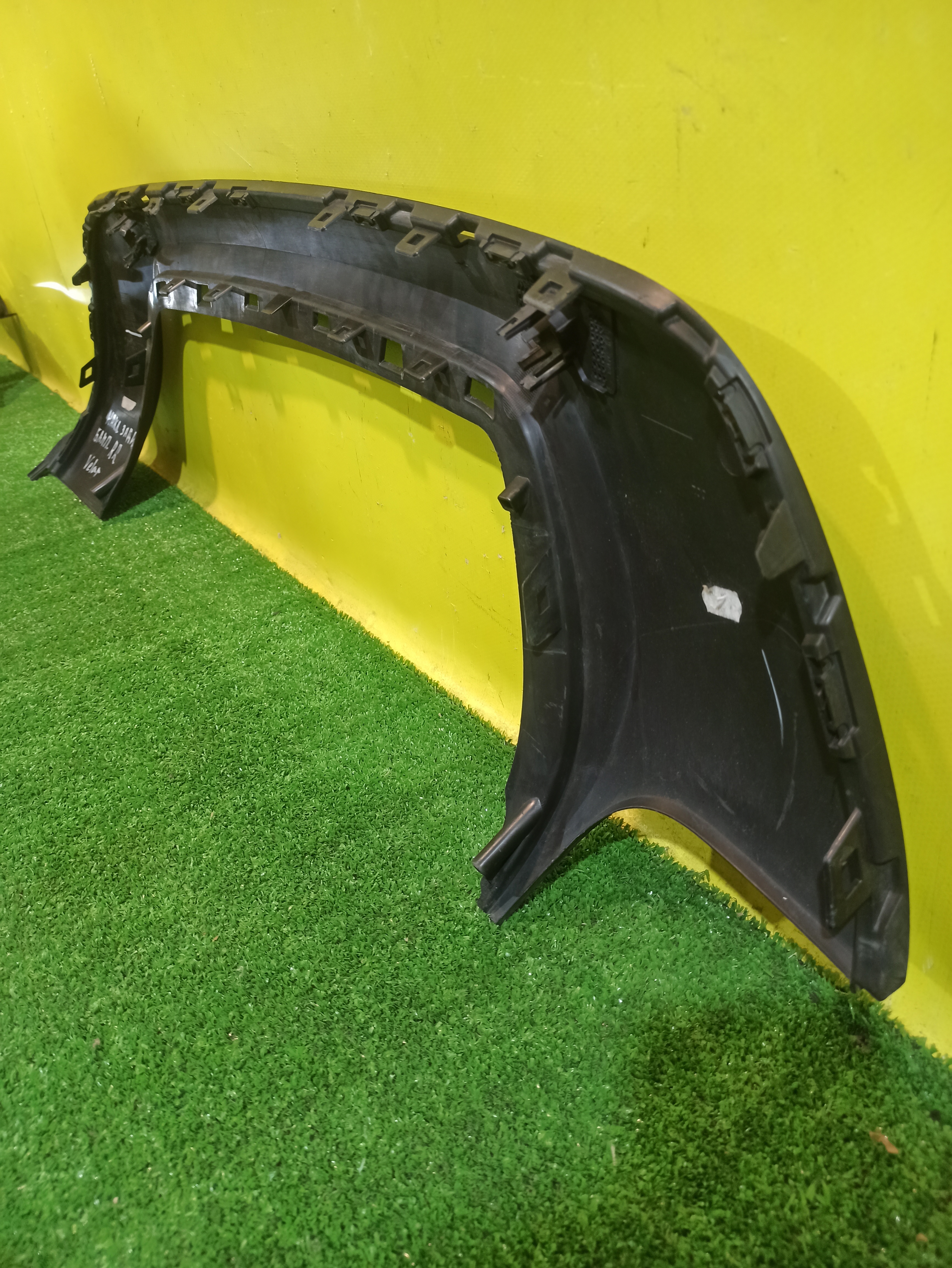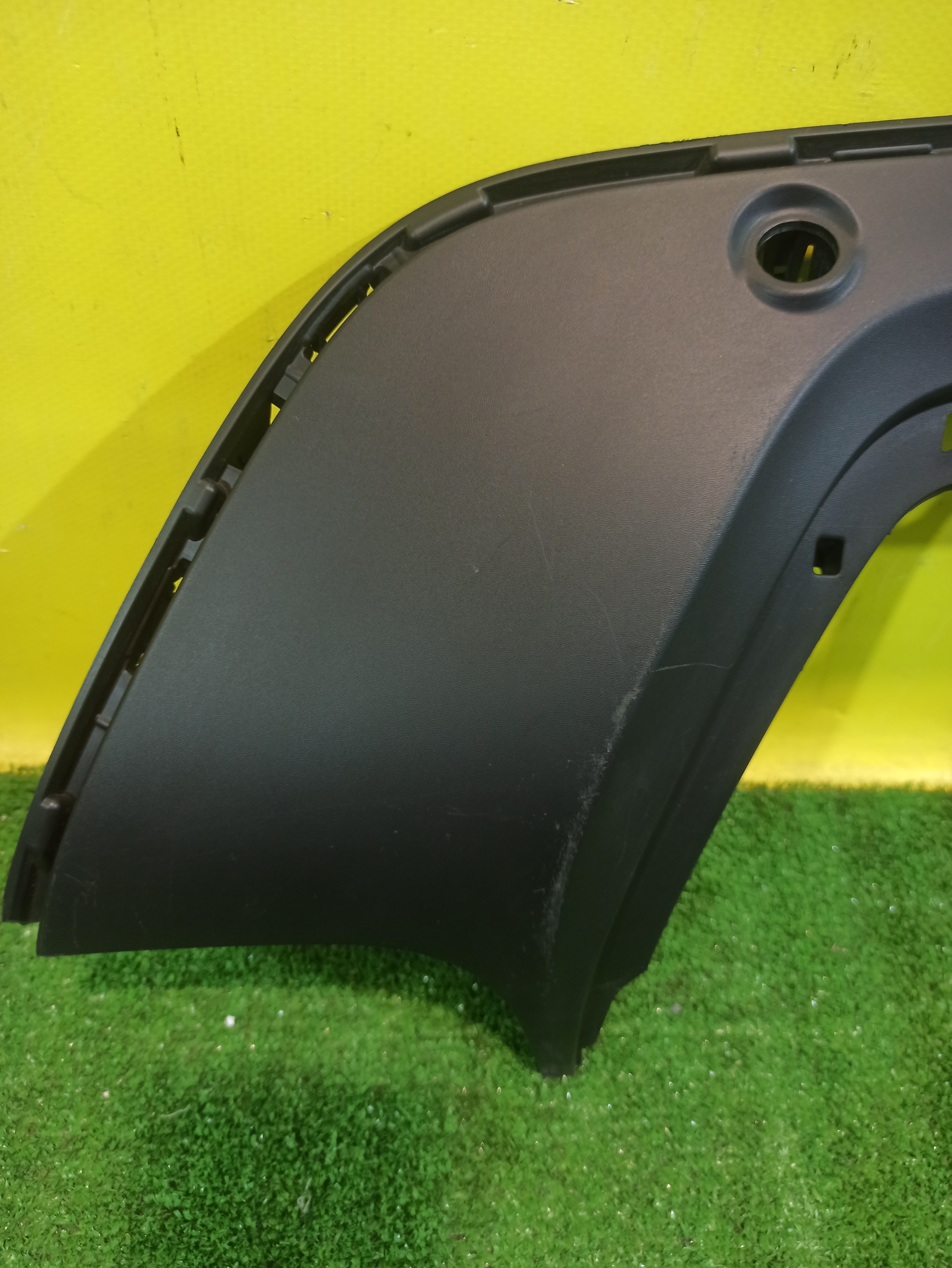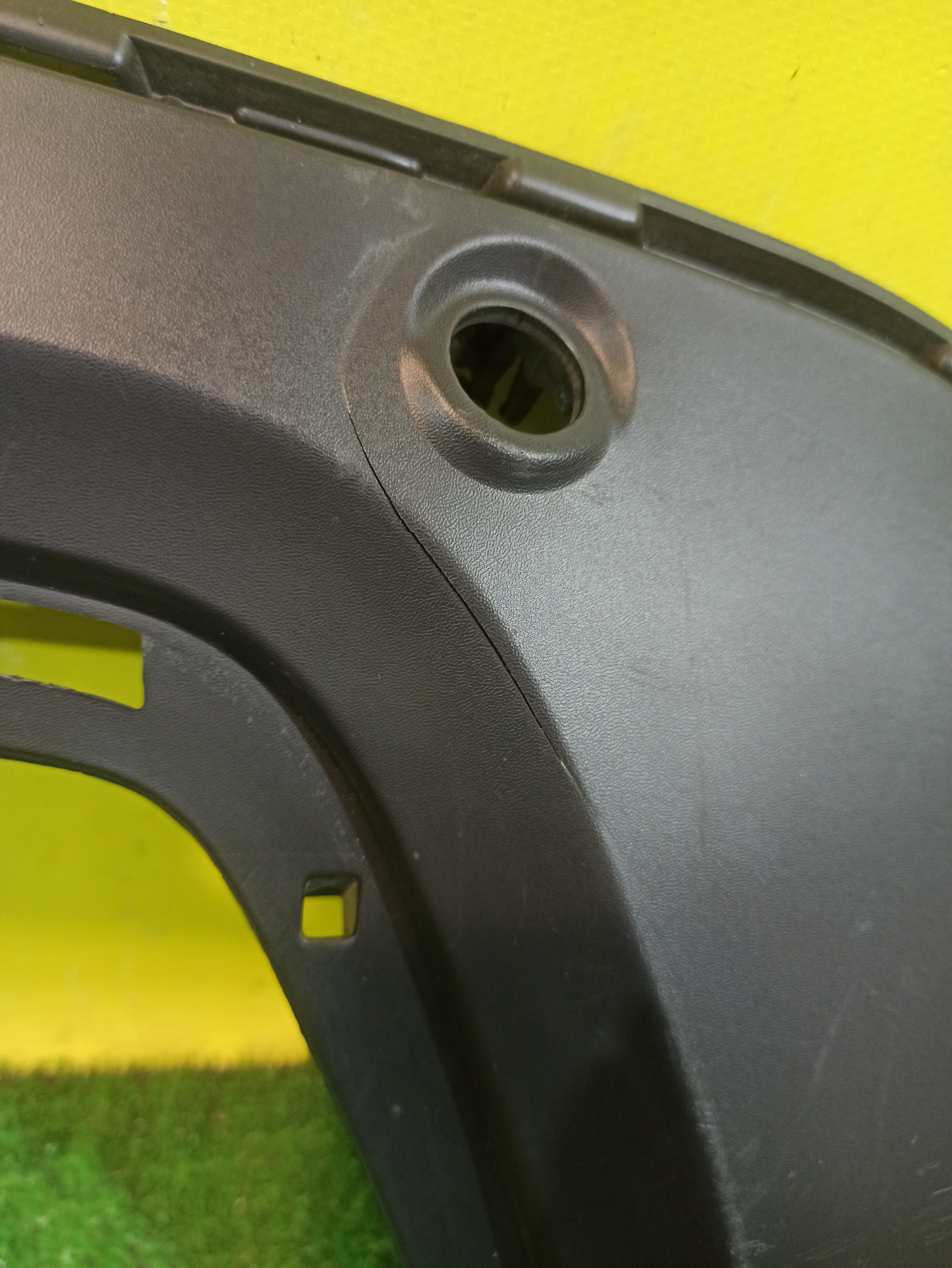 С отверстиями под парктроники. Имеет царапины и трещину.