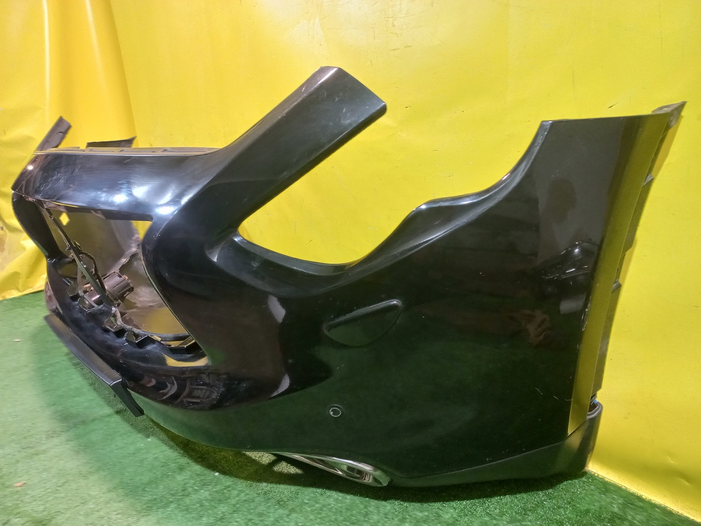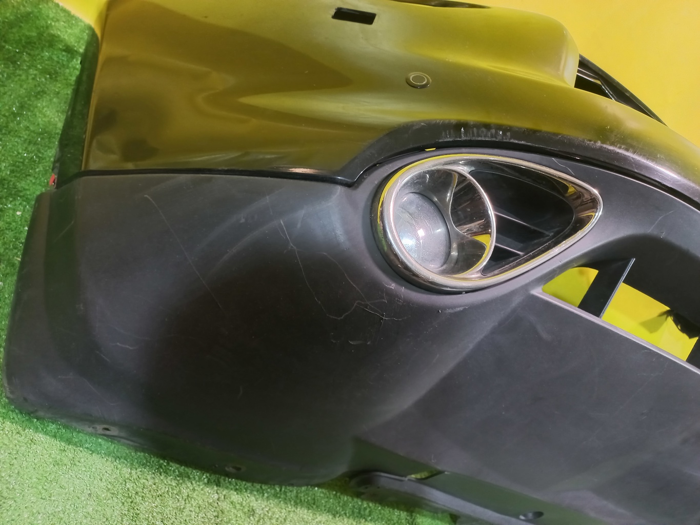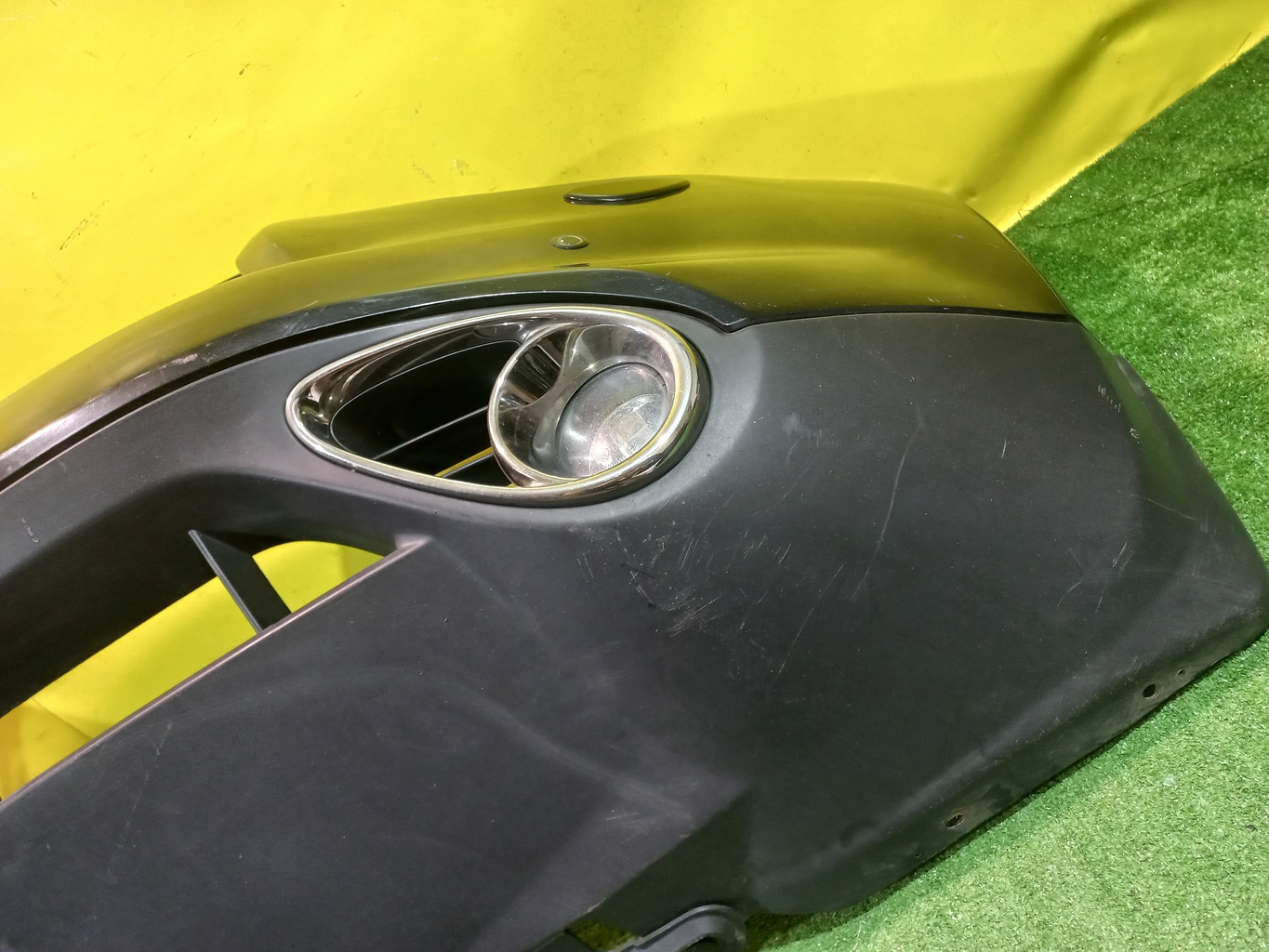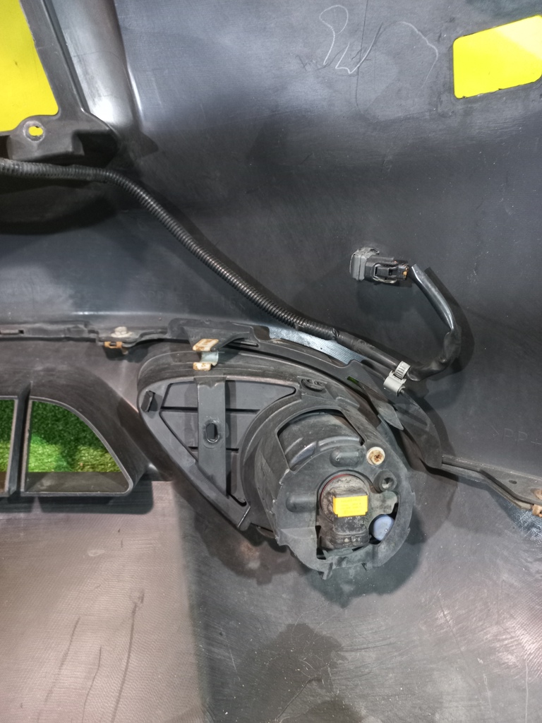 С отверстиями под парктроники, под омыватели фар. Имеет царапины. В комплекте с туманками, проводкой парктроников и одной форсункой.