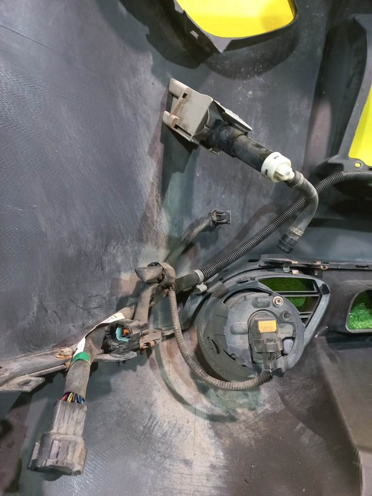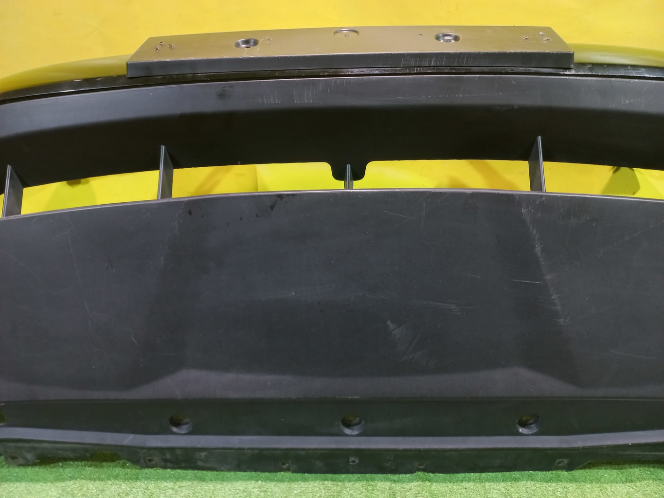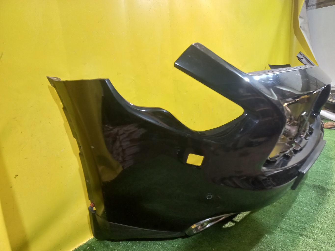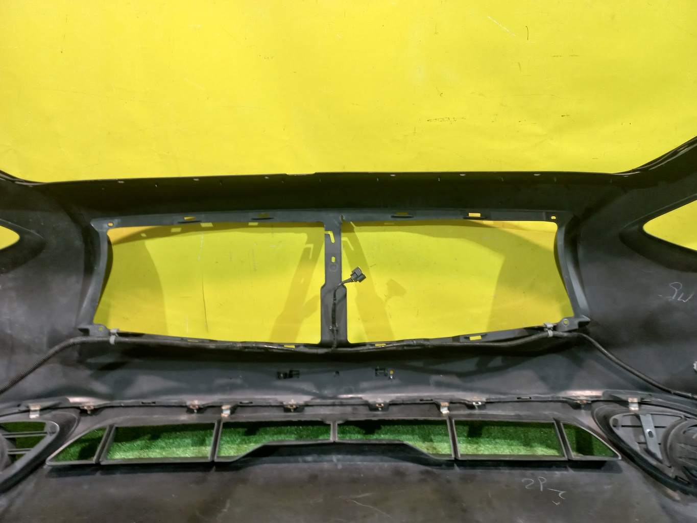 С отверстиями под парктроники, под омыватели фар. Имеет царапины. В комплекте с туманками, проводкой парктроников и одной форсункой.