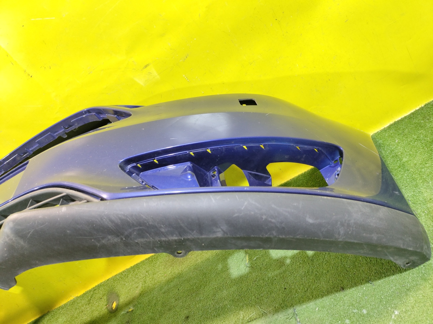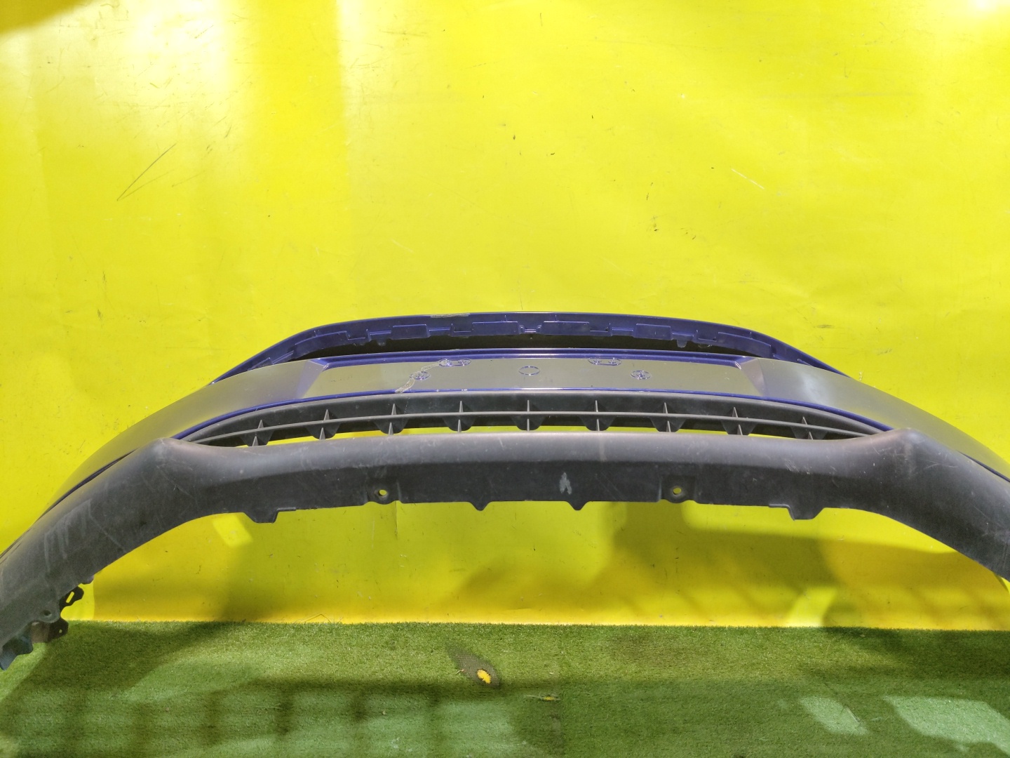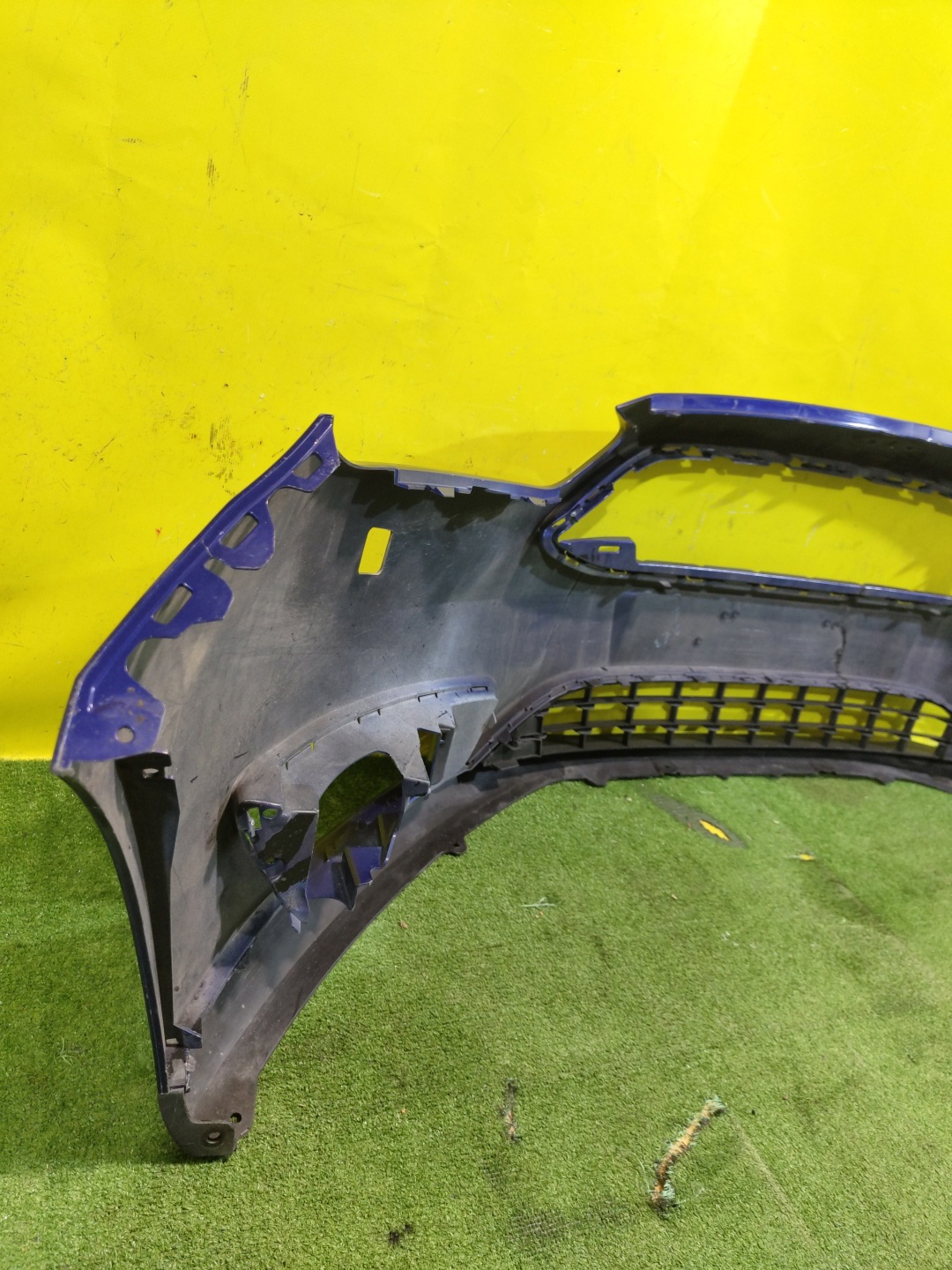 С отверстиями под омыватели фар. Проведен ремонт. Юбка имеет глубокие царапины.