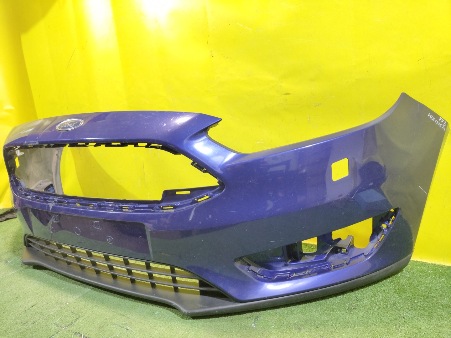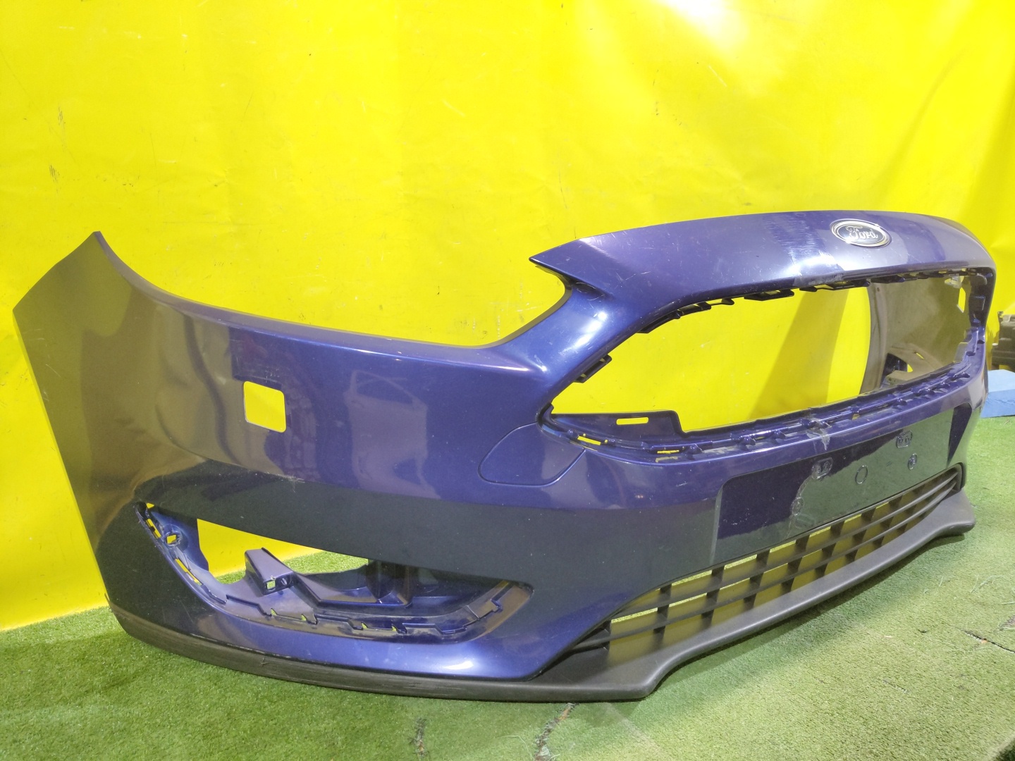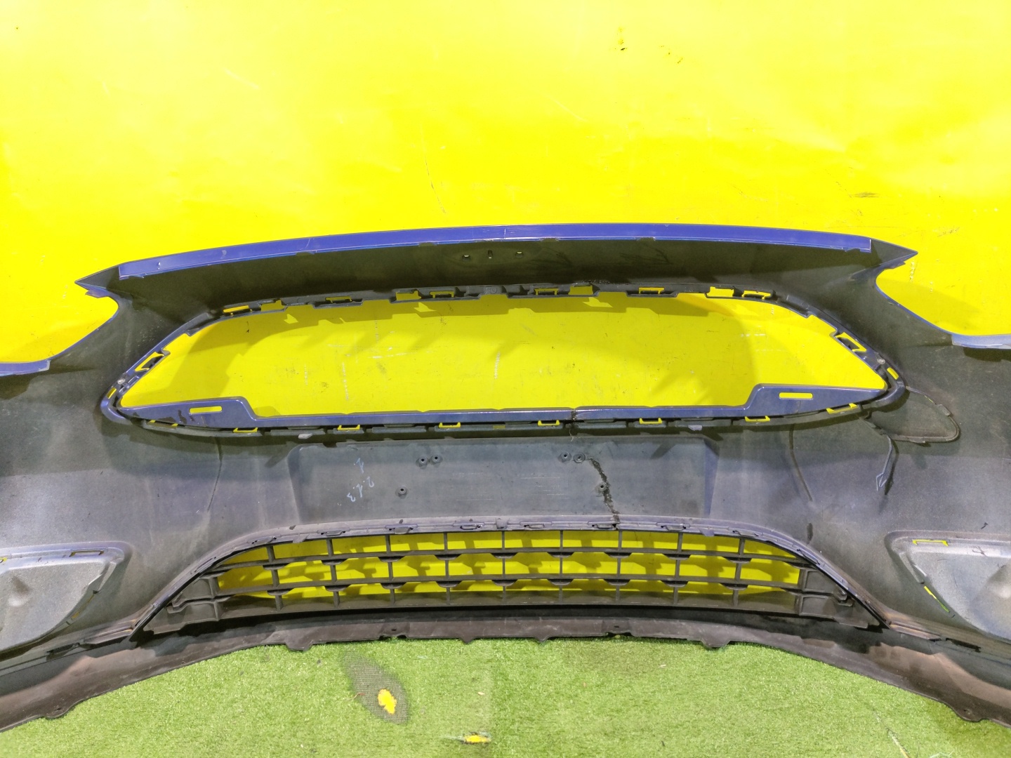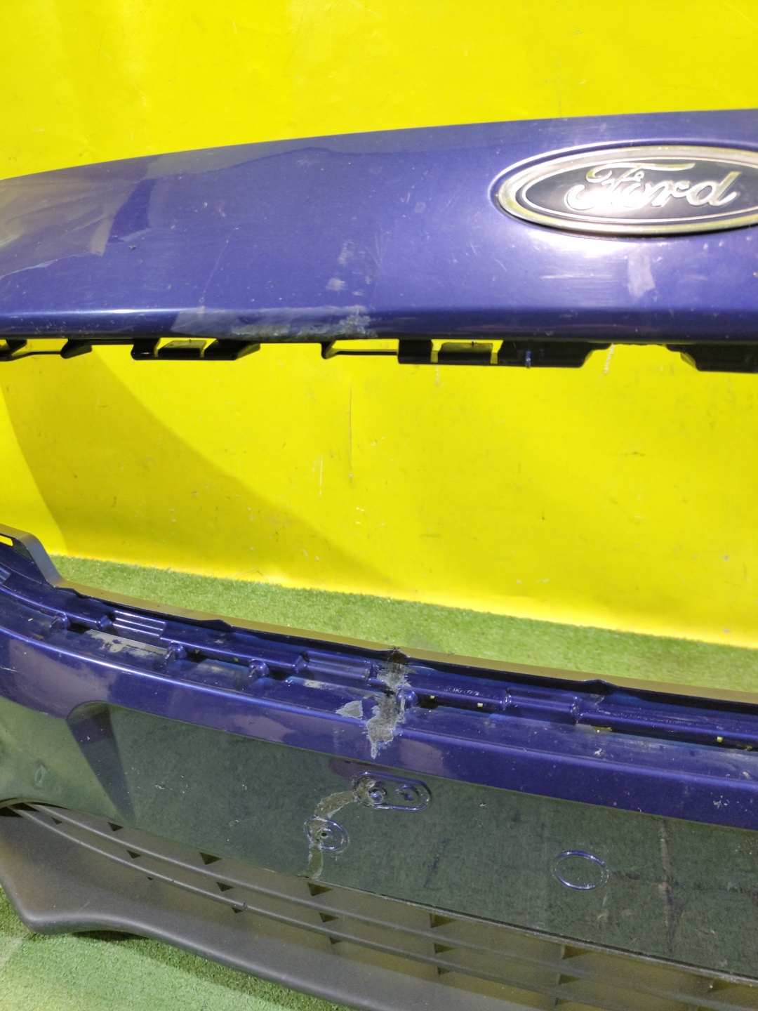 С отверстиями под омыватели фар. Проведен ремонт. Юбка имеет глубокие царапины.
