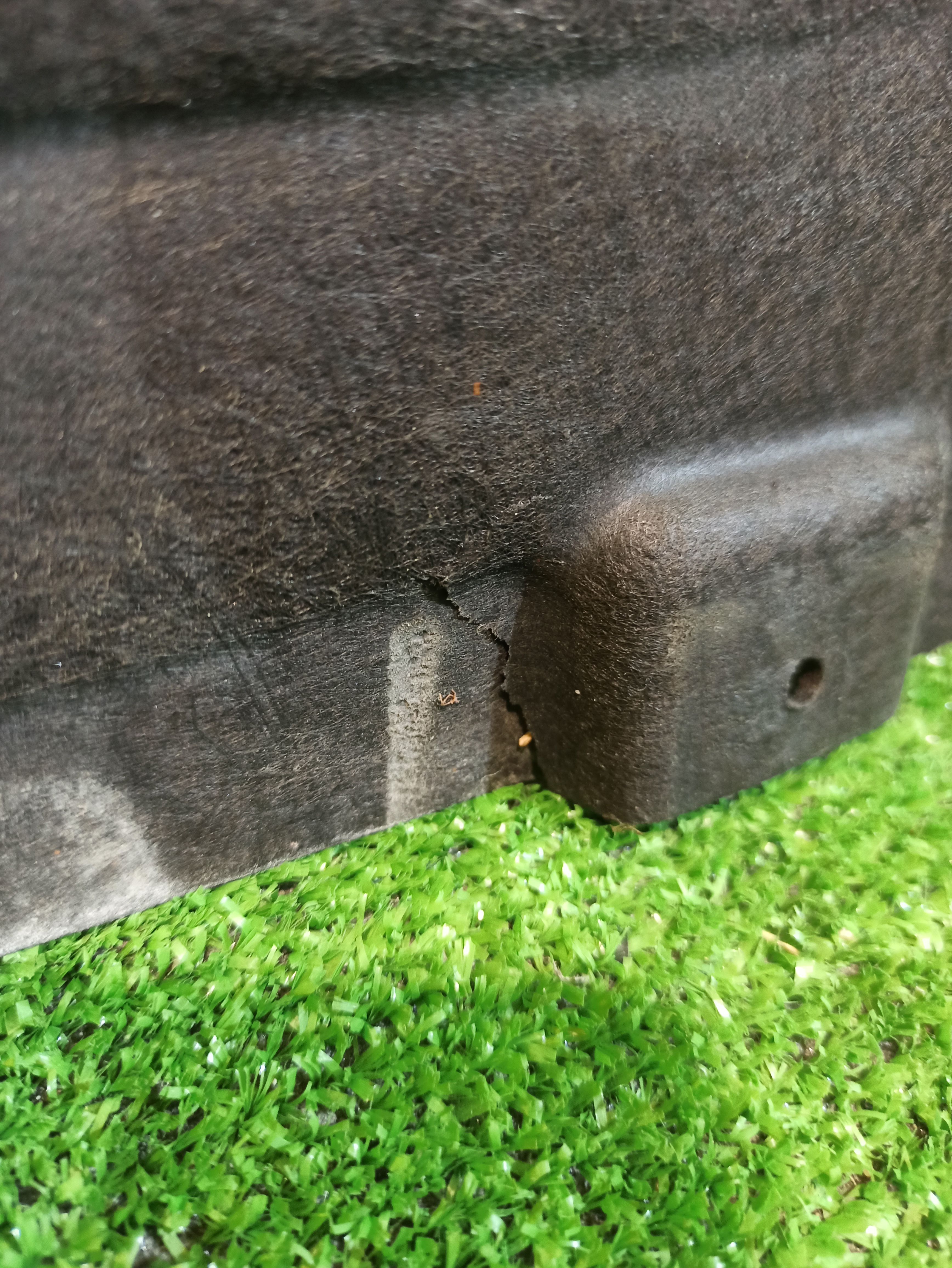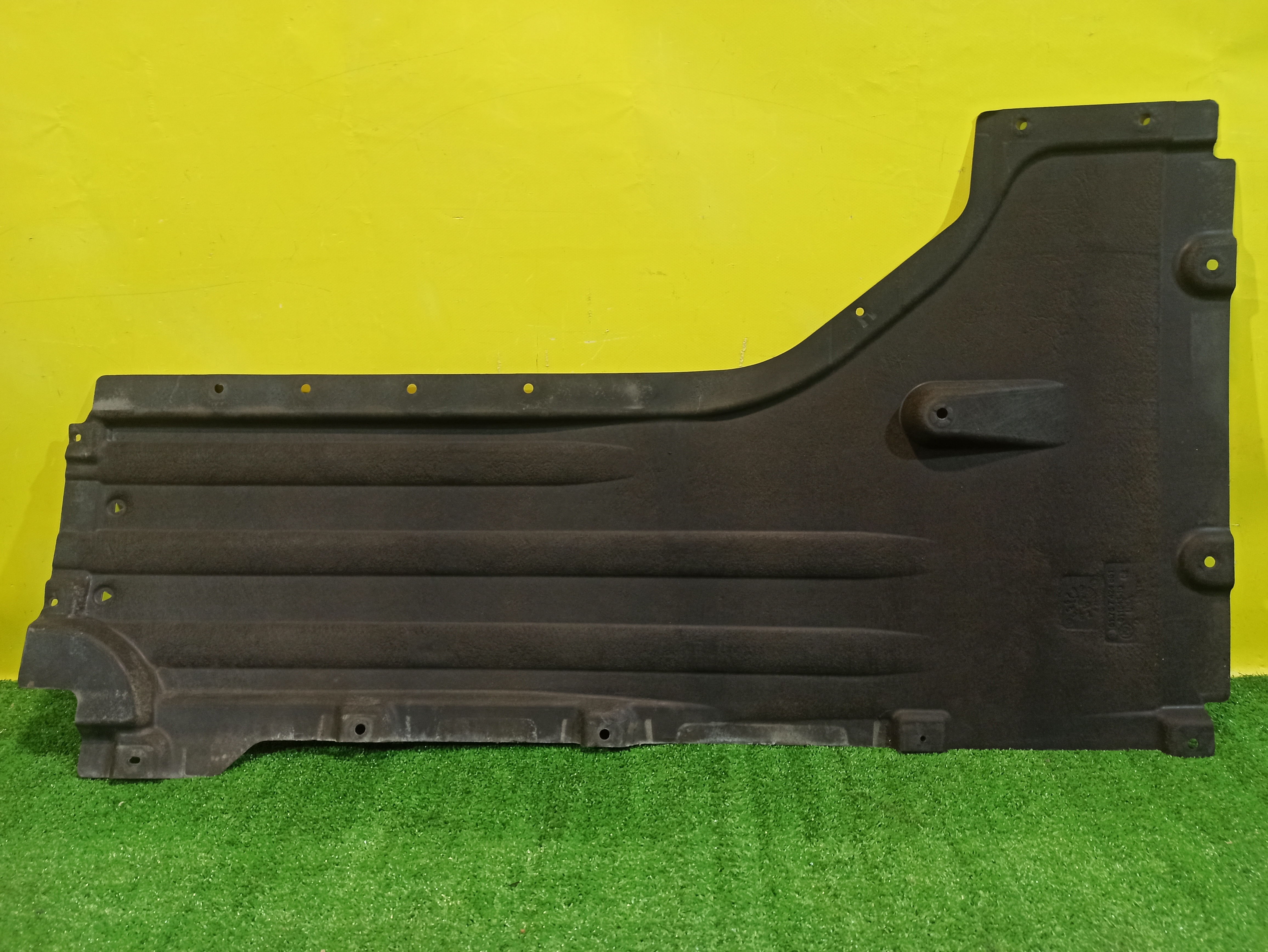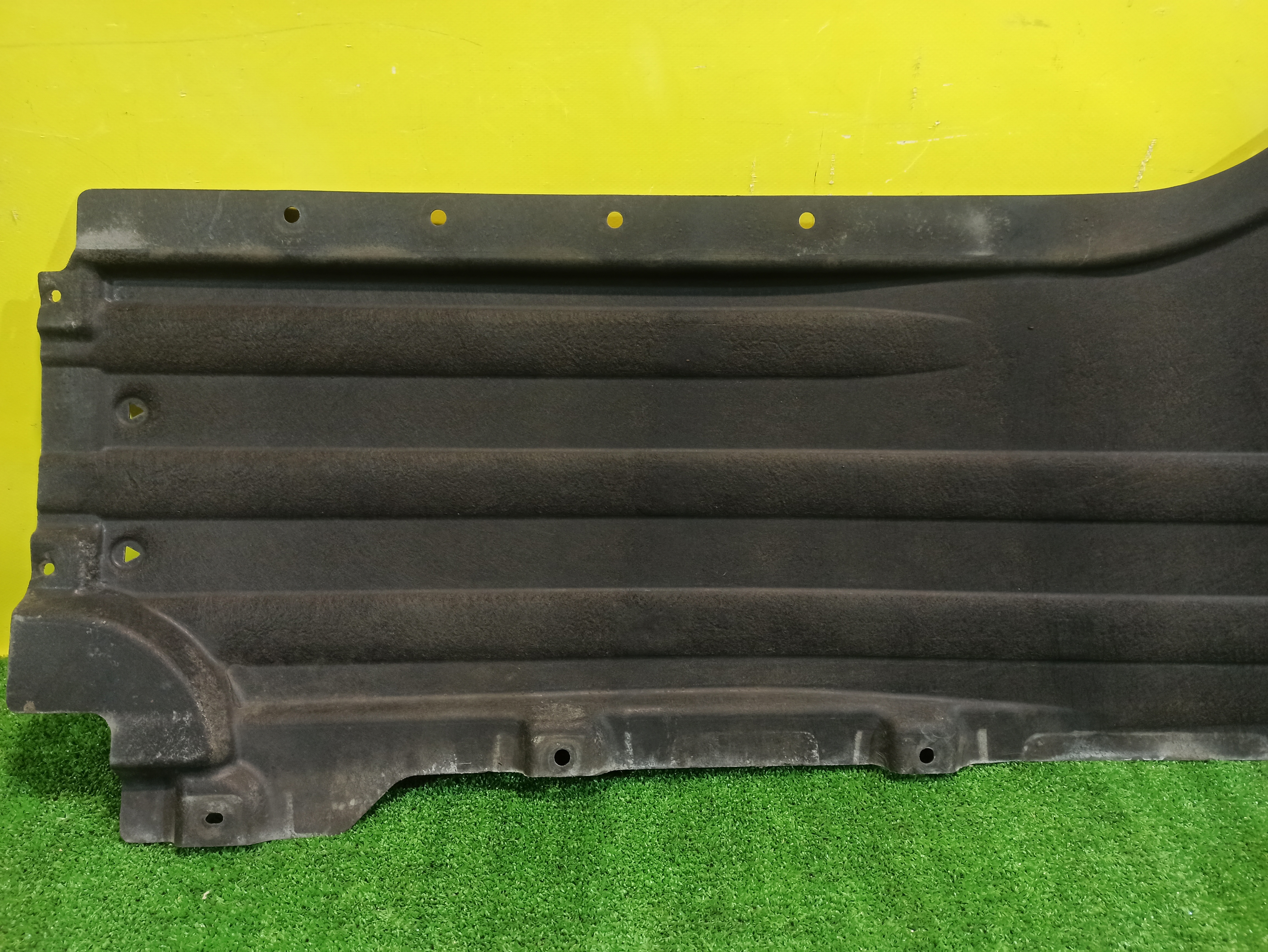 Защита днища левая. Имеет дефекты (фото 4, 5 и 6).