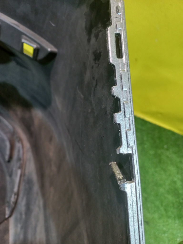 Без отверстий под парктроники. Проведён ремонт (фото 4 и 5), имеет царапины (фото 6), имеет дефект одного крепления (фото 7).