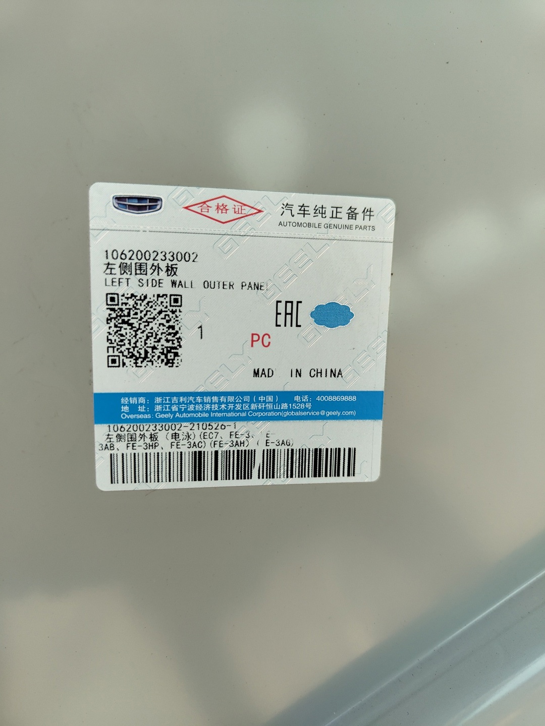 Боковина кузова левая для Geely Emgrand EC7 2009