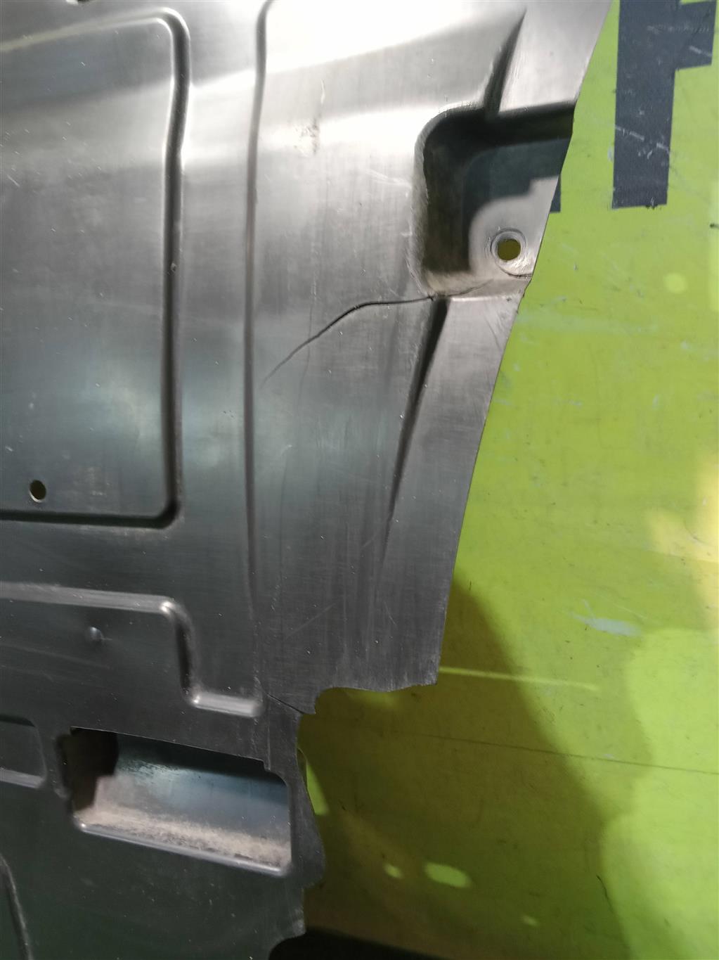 Защита ДВС антигравийная. Имеет трещены (фото 4, 6 и 7).