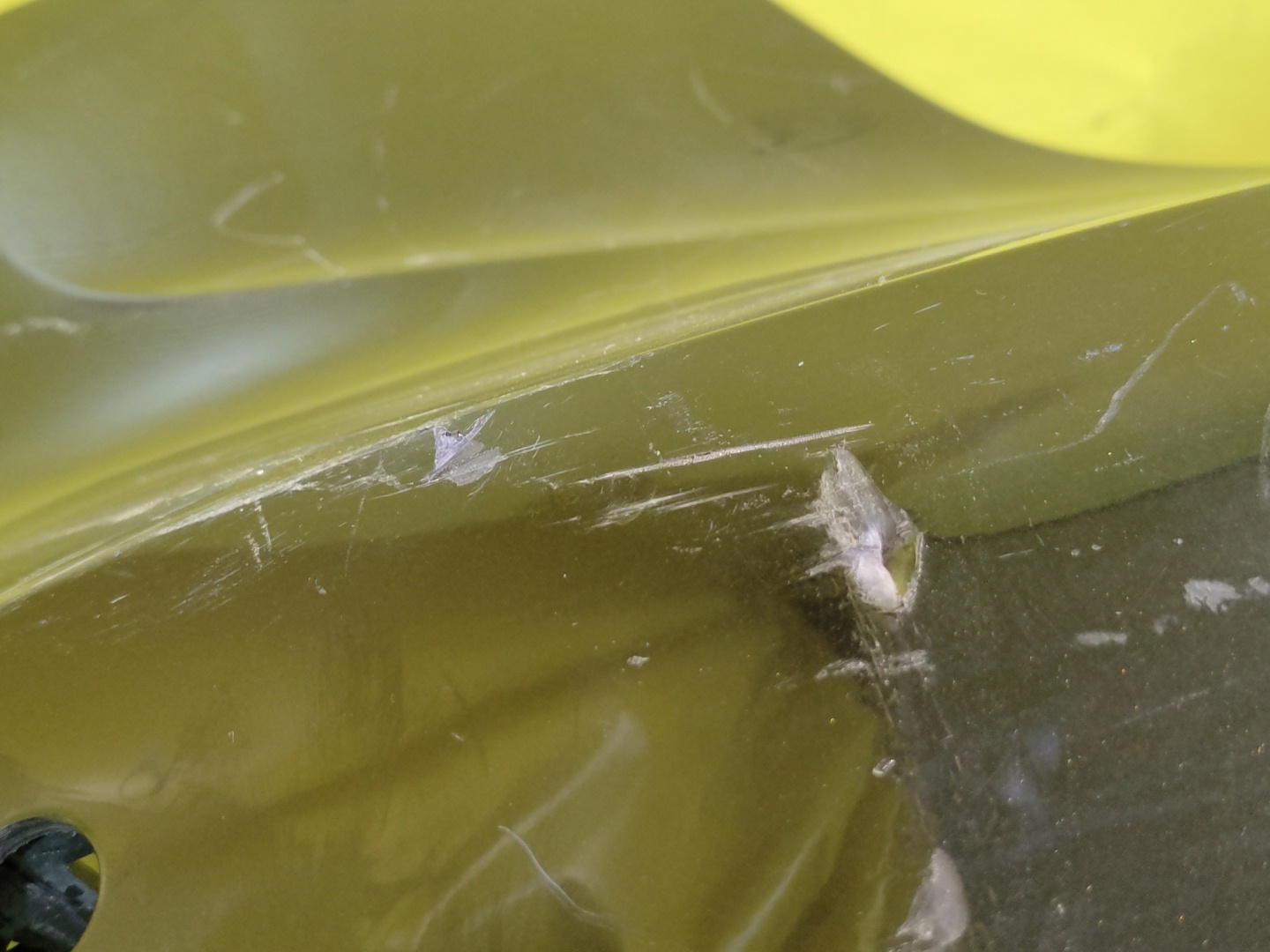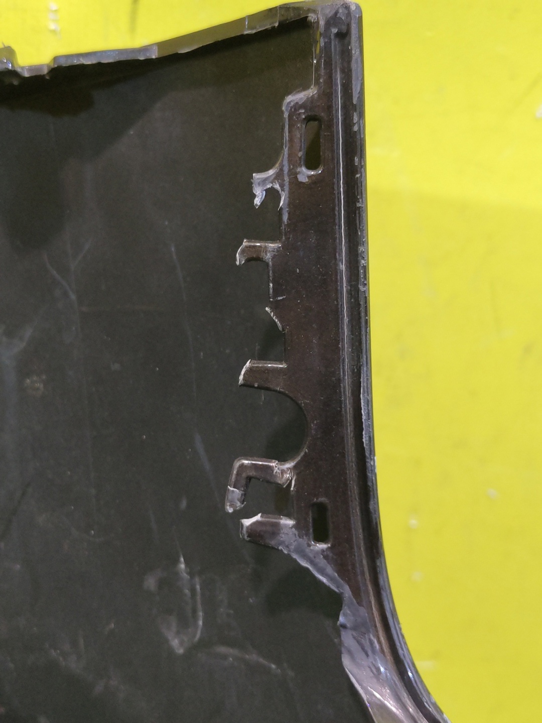 С отверстиями под парктроники. Имеет царапины и дефект креплений (фото 8).