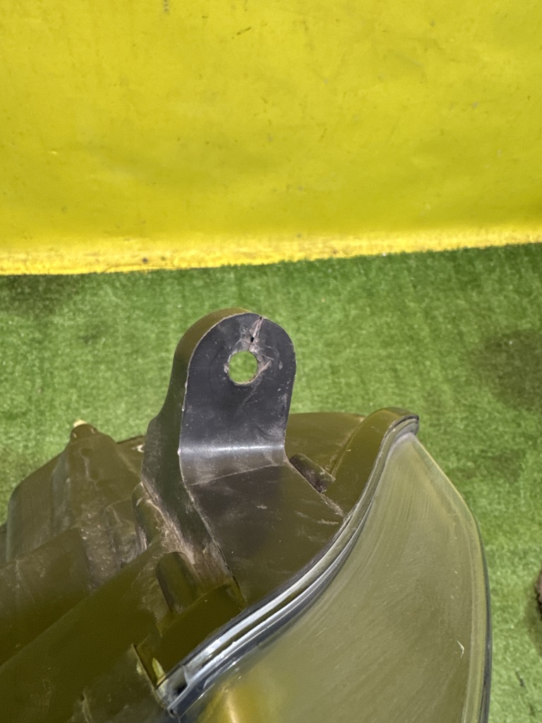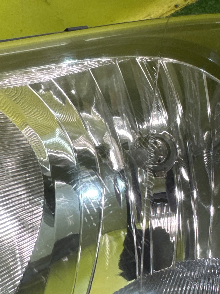 Галоген. Имеет дефект крепления (фото 4 и 5) и микротрещины на стекле (фото 6).