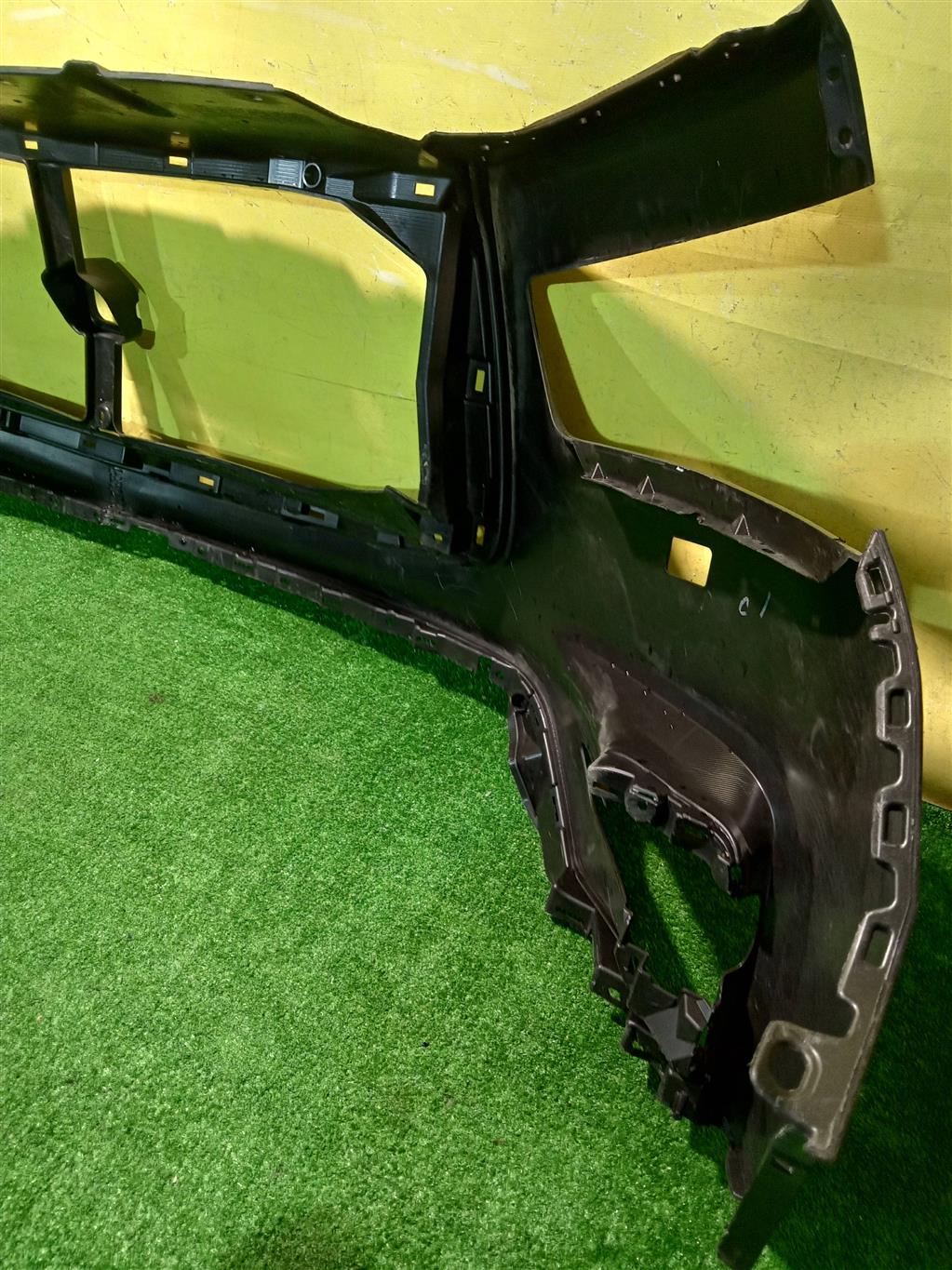 С отверстиями под омыватели фар. Был проведен ремонт.