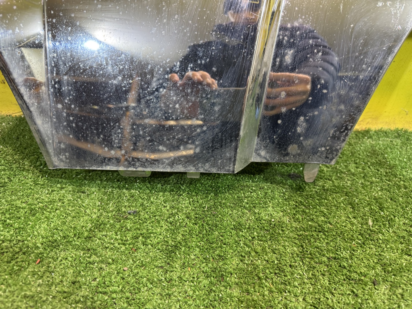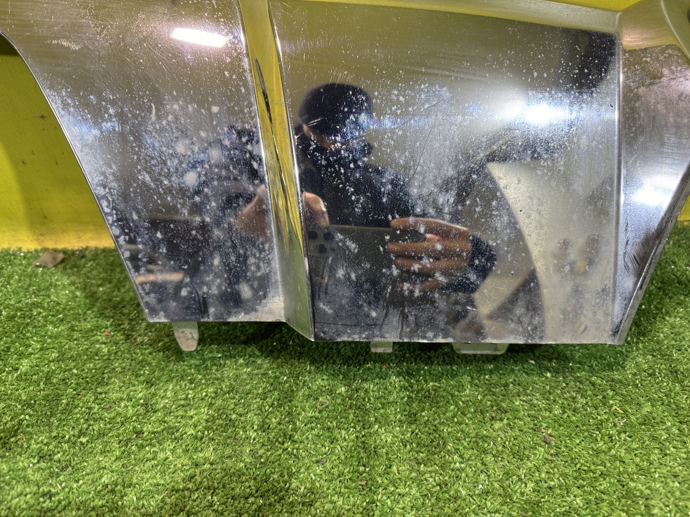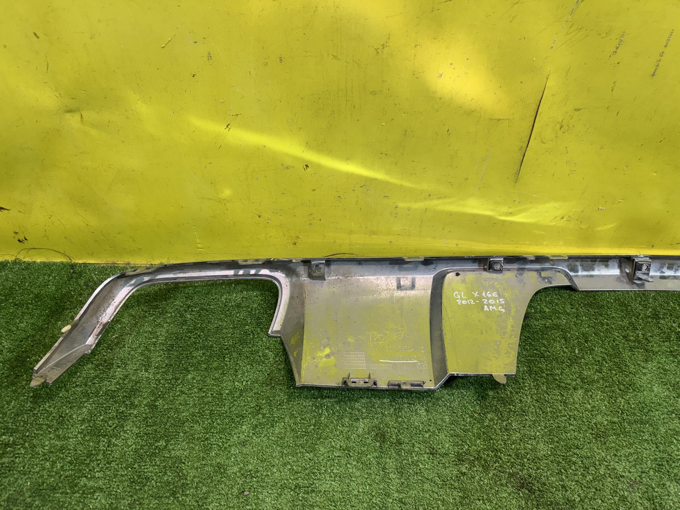 С вырезом под фаркоп. Имеет загрязнения, требует полировки.