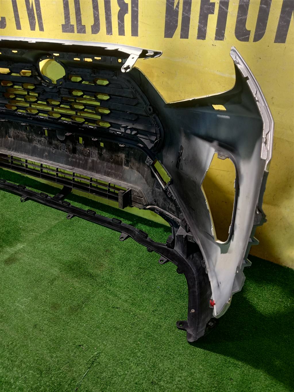 С отверстиями под омыватели фар, без парктроников, в бронепленке, проведен ремонт ( фото 7), имеет царапины.