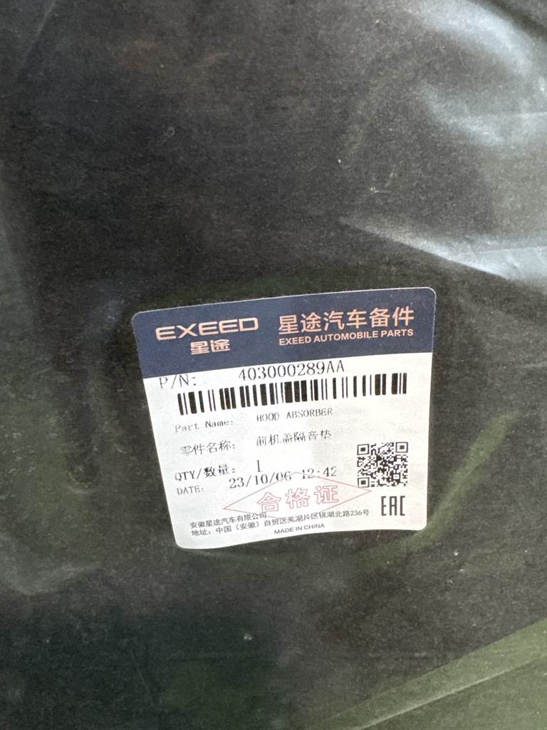 Шумоизоляция капота для Chery Exeed TXL 2019