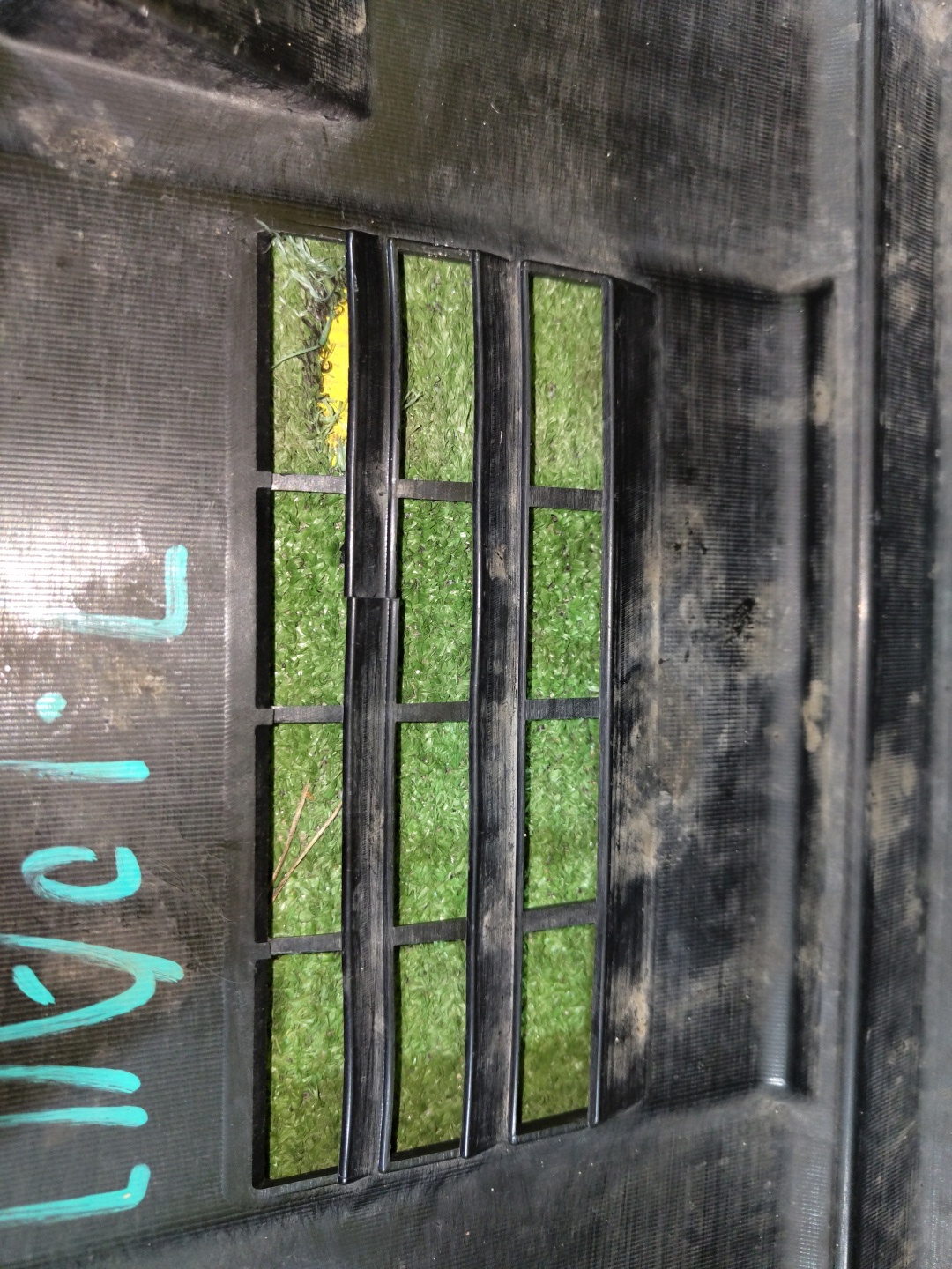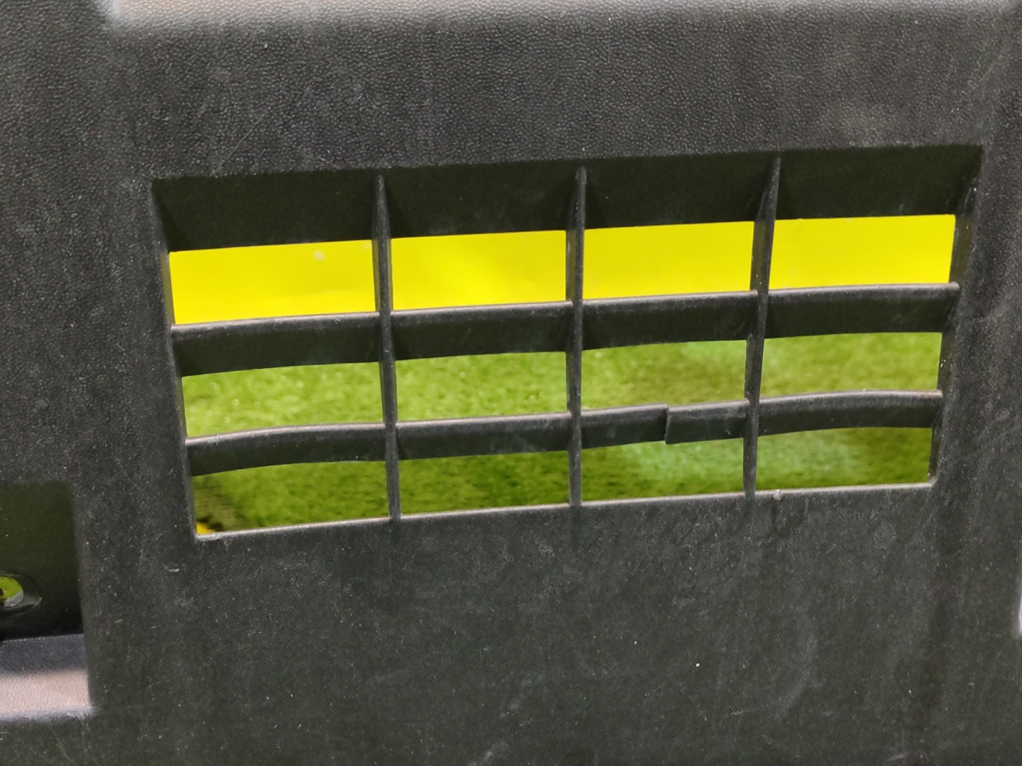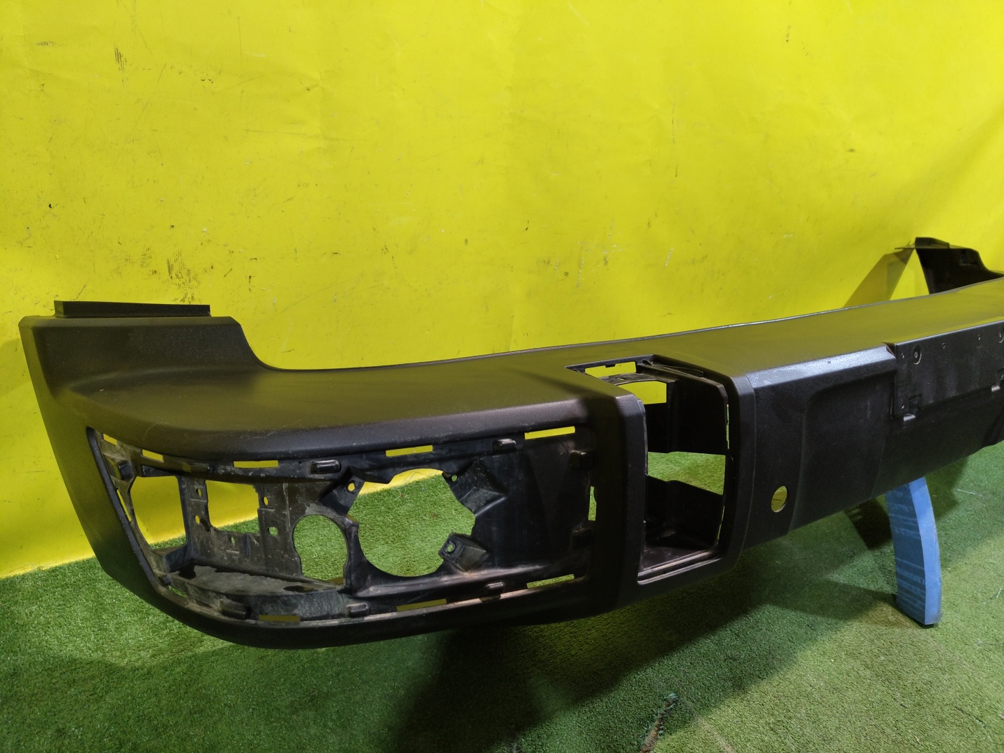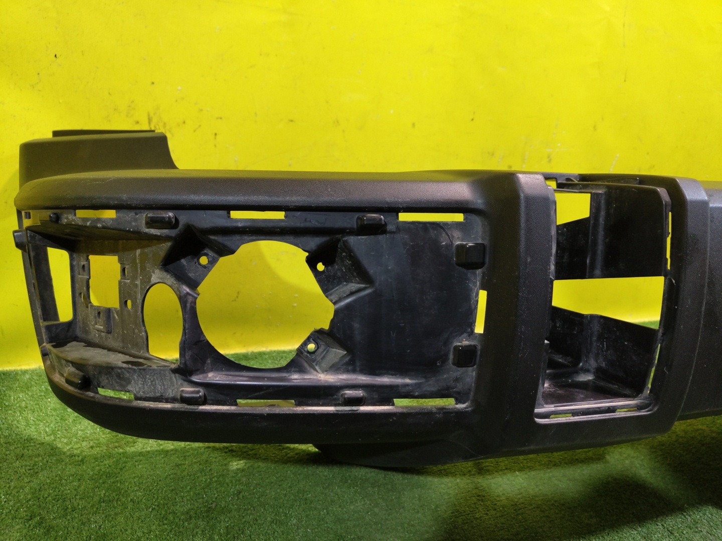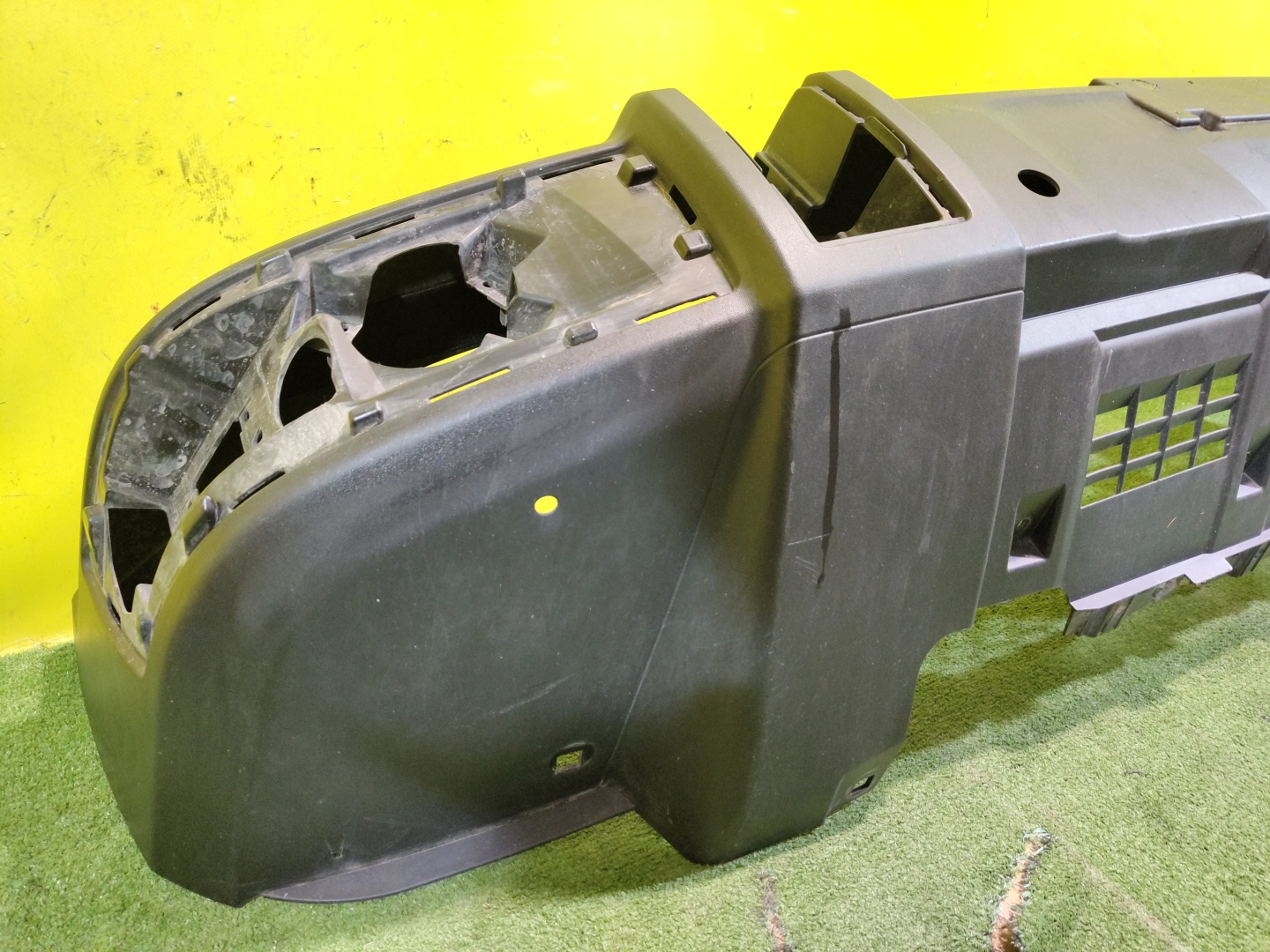 С отверстиями под парктроники. Имеет царапины и трещины на центральной решетке.