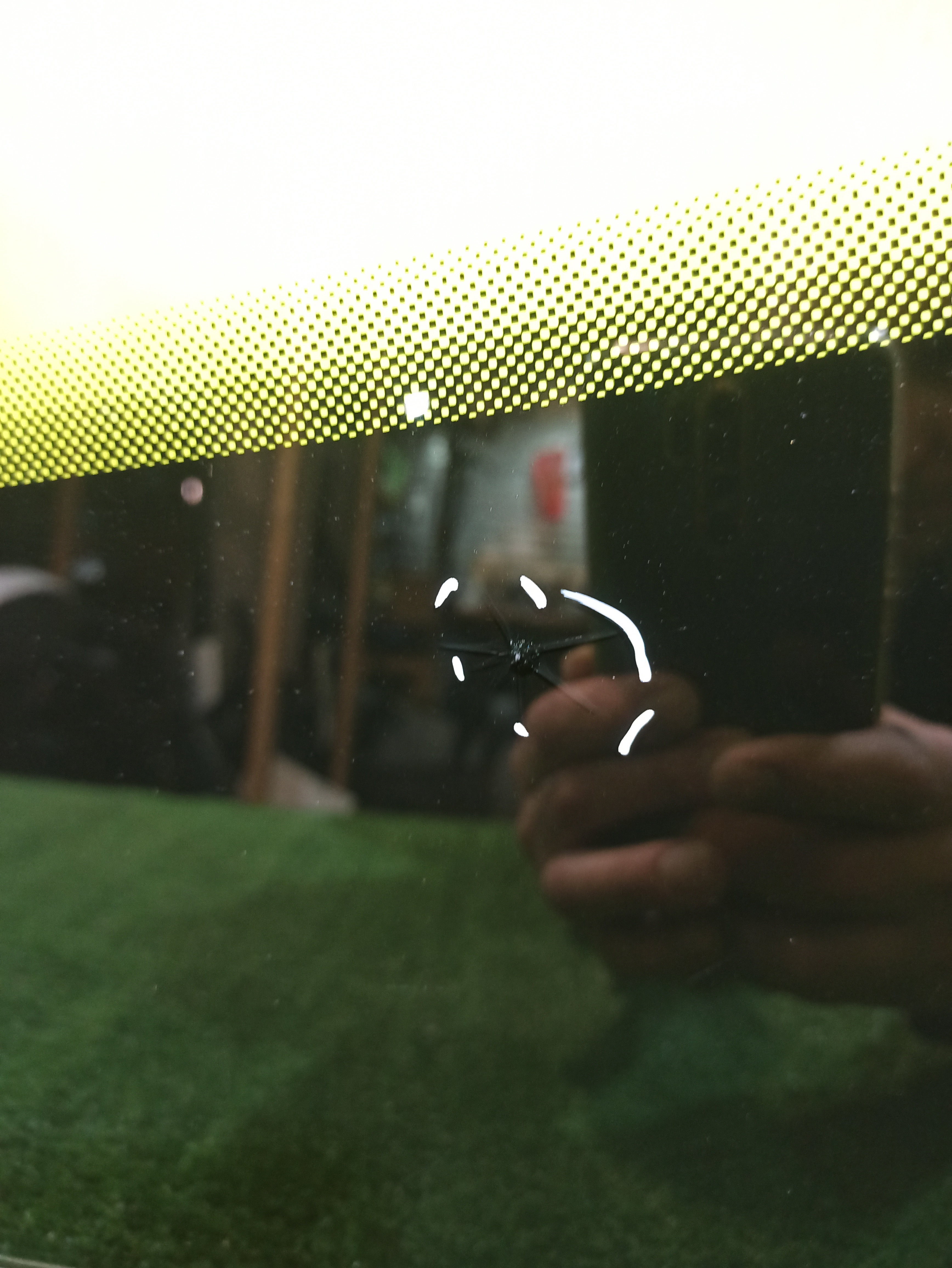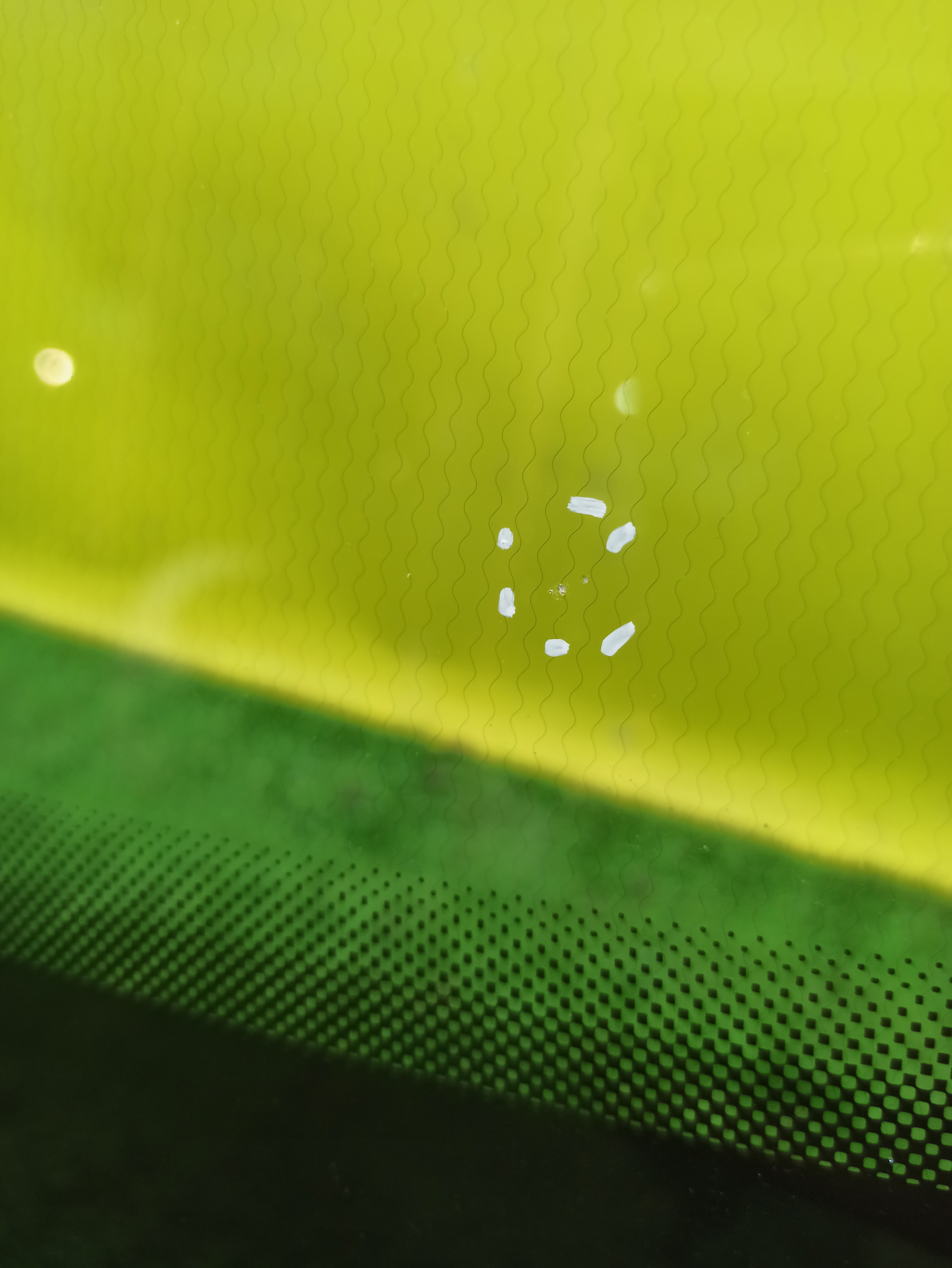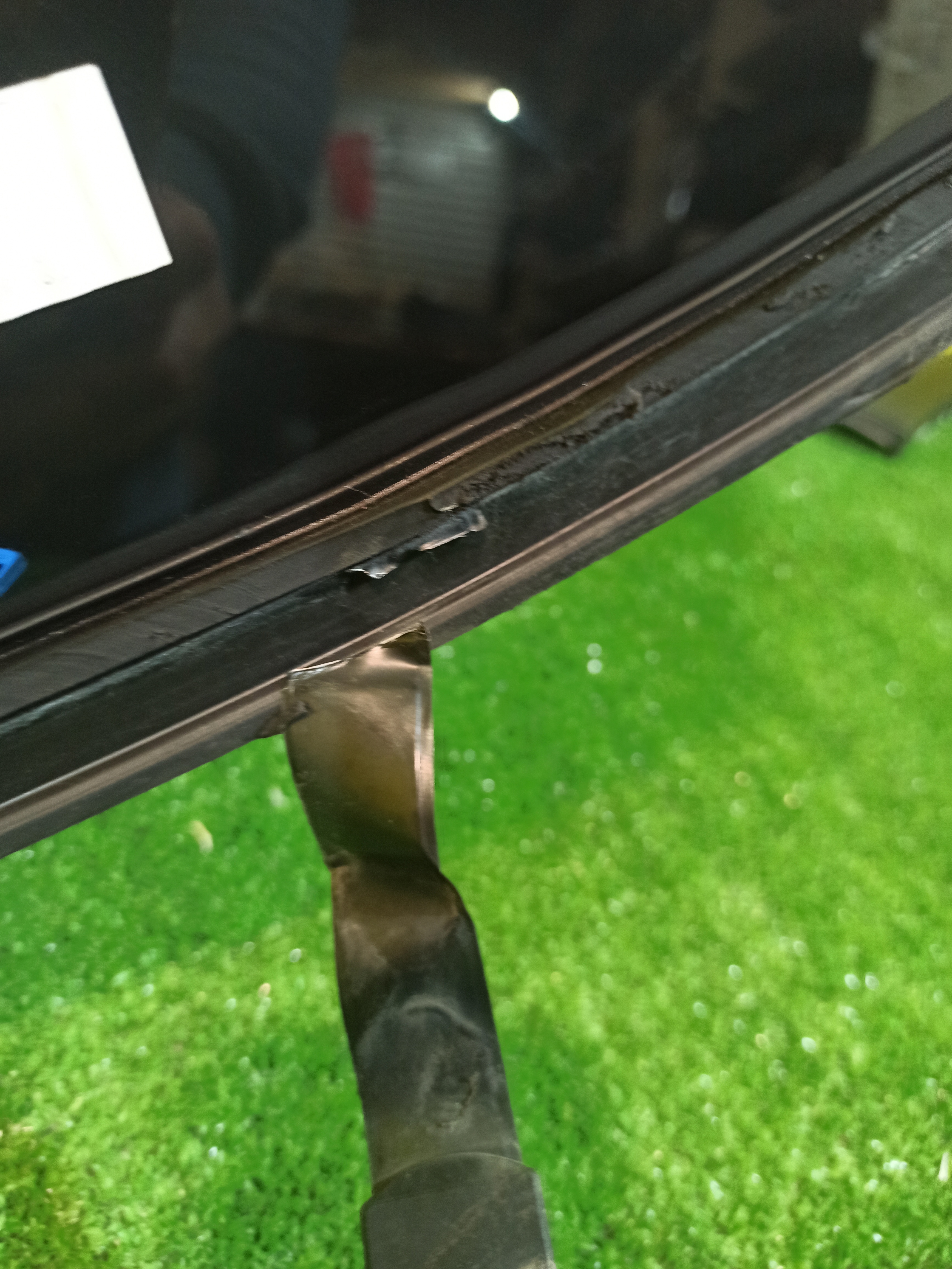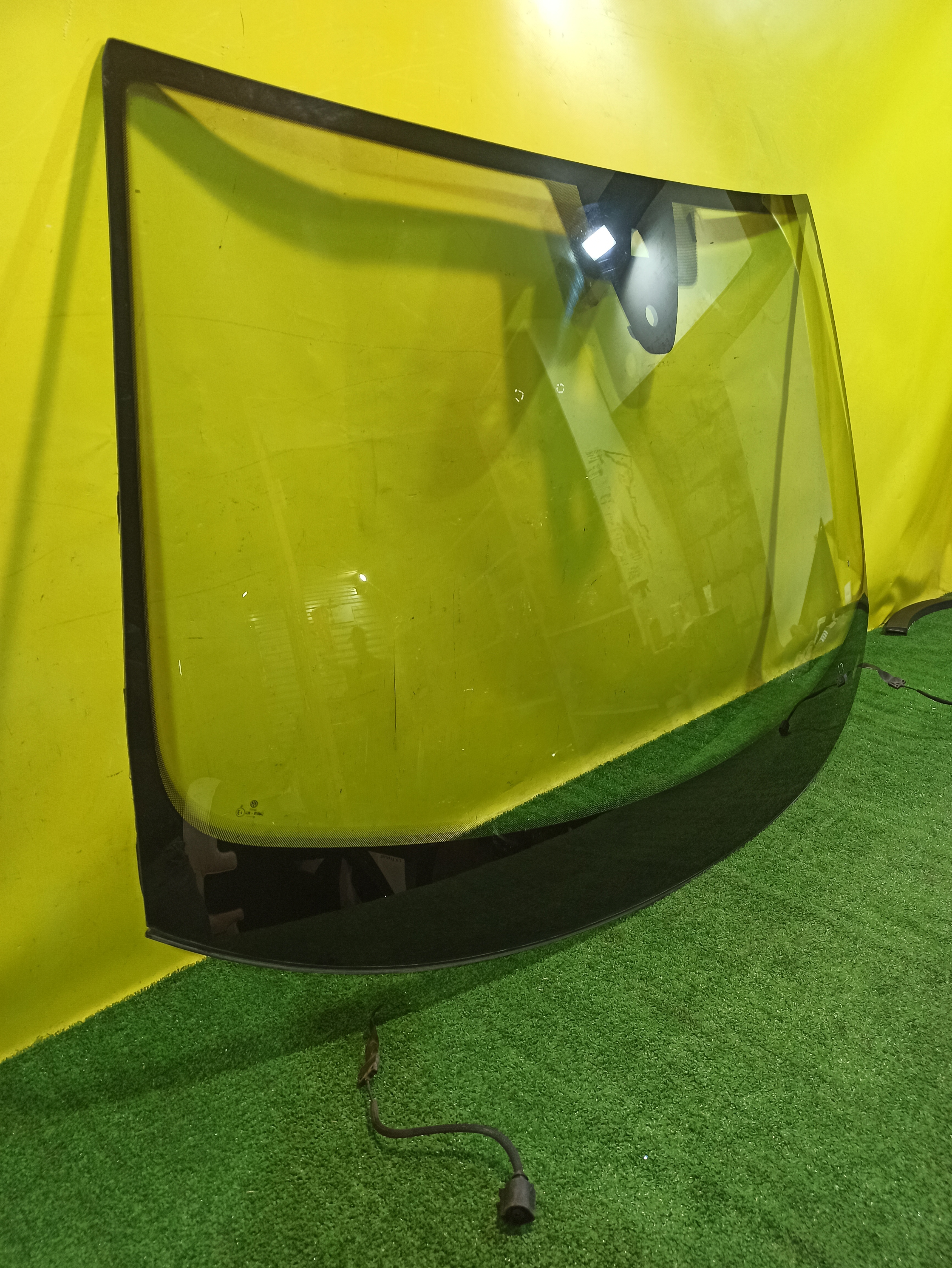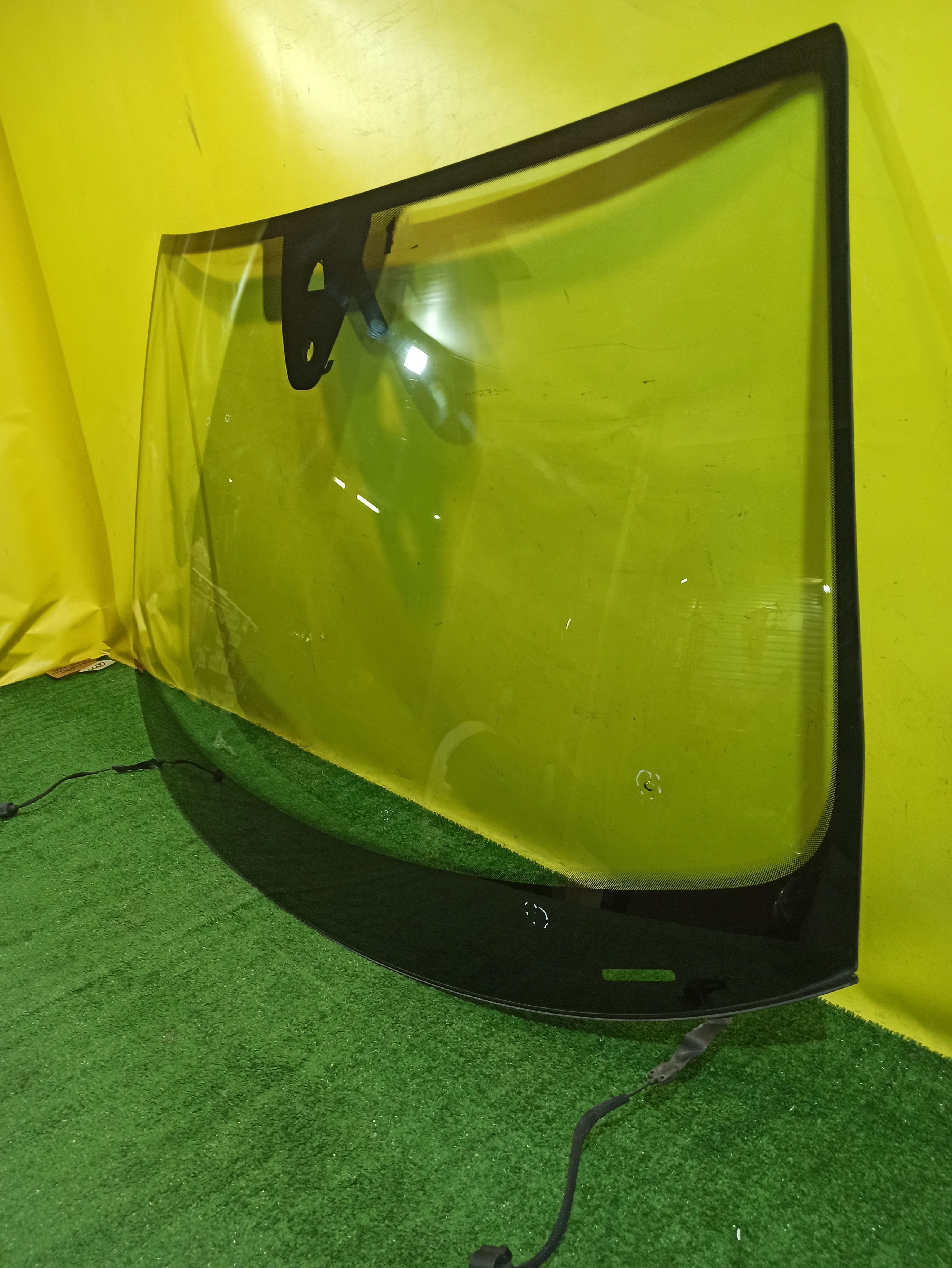 Под камеру, датчик дождя, подогрев. Оторван один шлейф. Имеет два скола и три микроскола. Год выпуска стекла 2019.