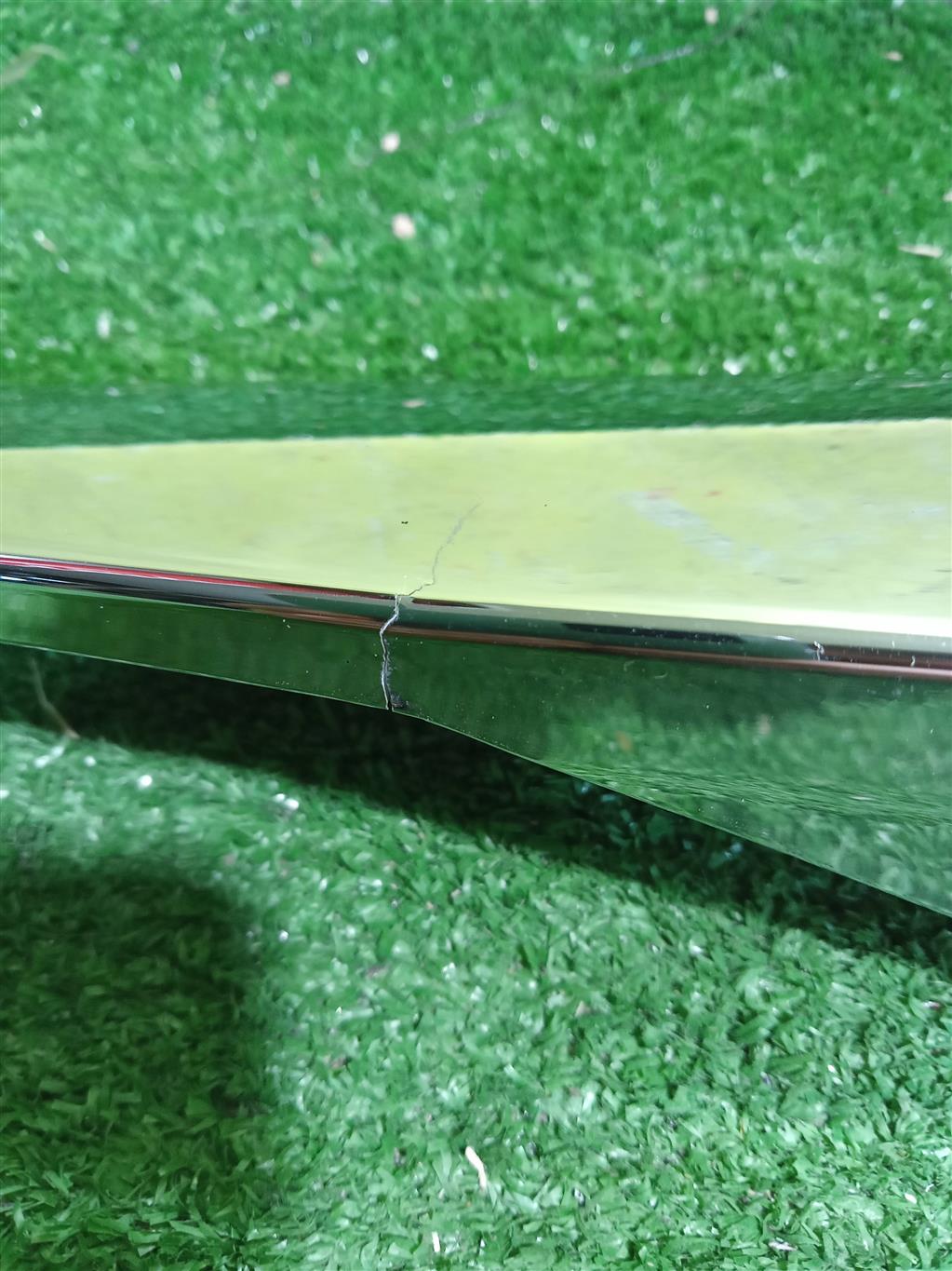 Хром накладка двери багажника. Имеет трещину, притертость и отсутствует одно крепление (фото 4, 5, 6, 7 и 8).