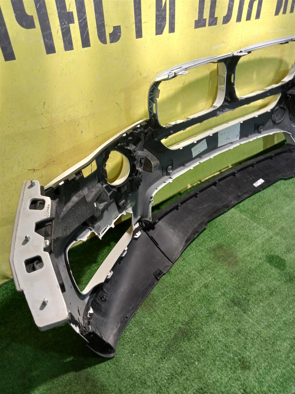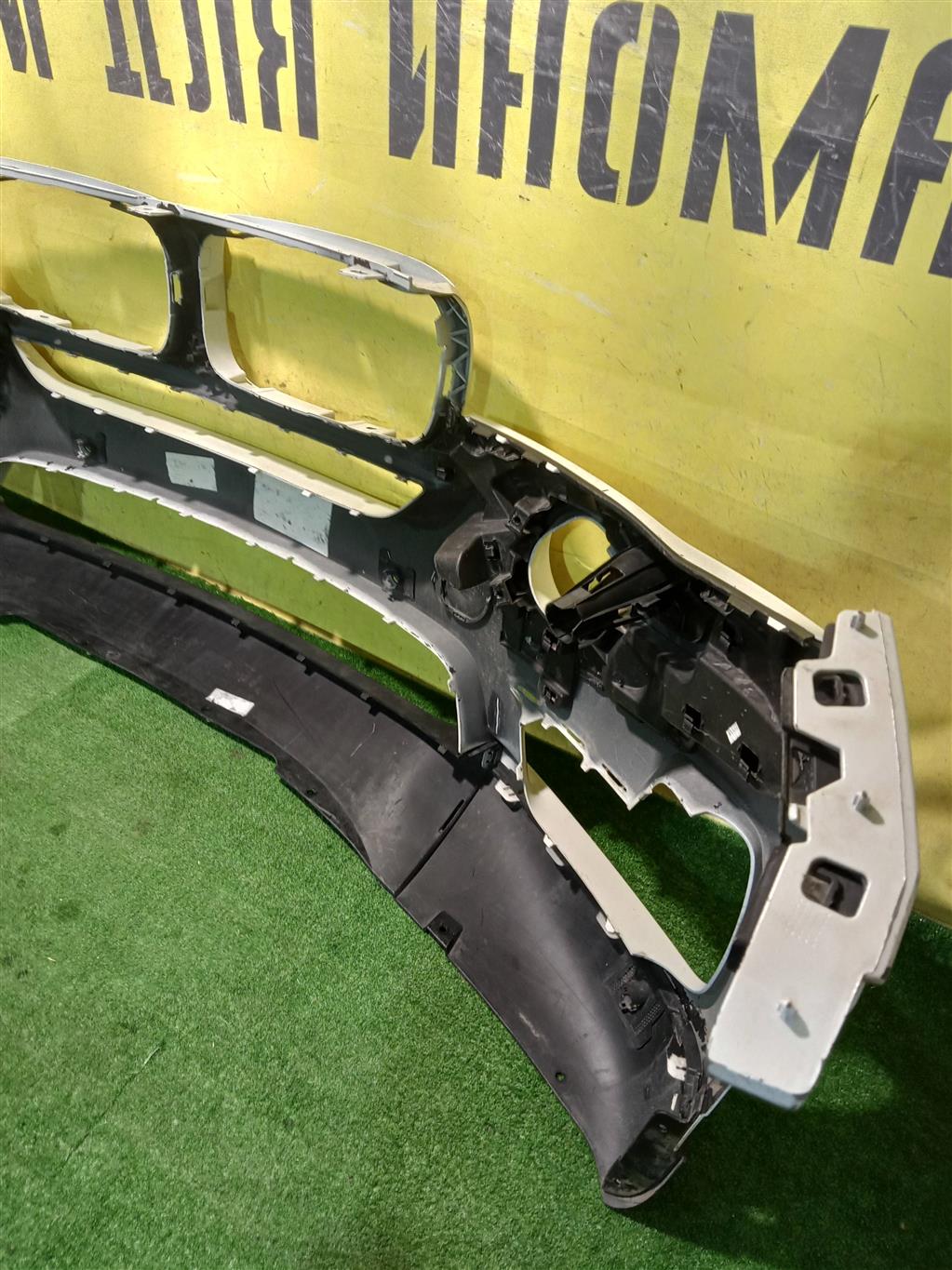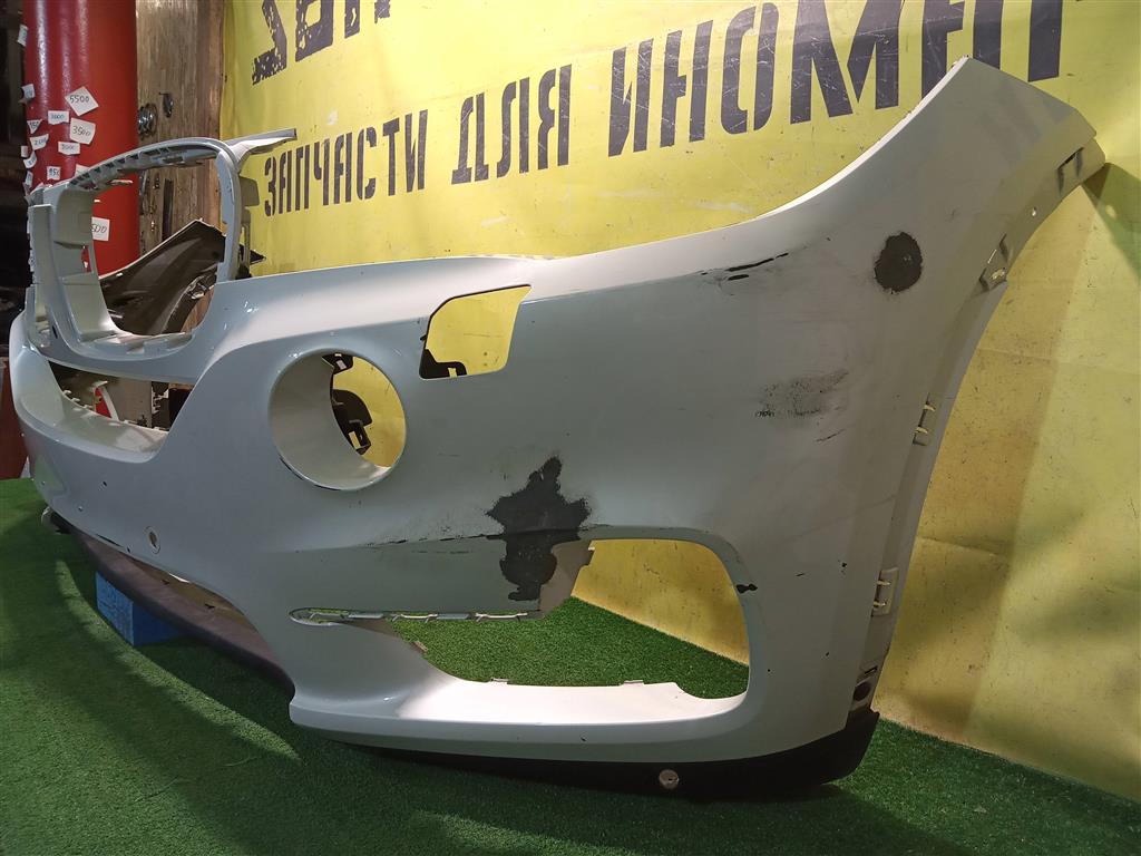 С отверстиями под парктроники, под омыватели фар. Имеет притертости, царапинки. Был проведен ремонт.