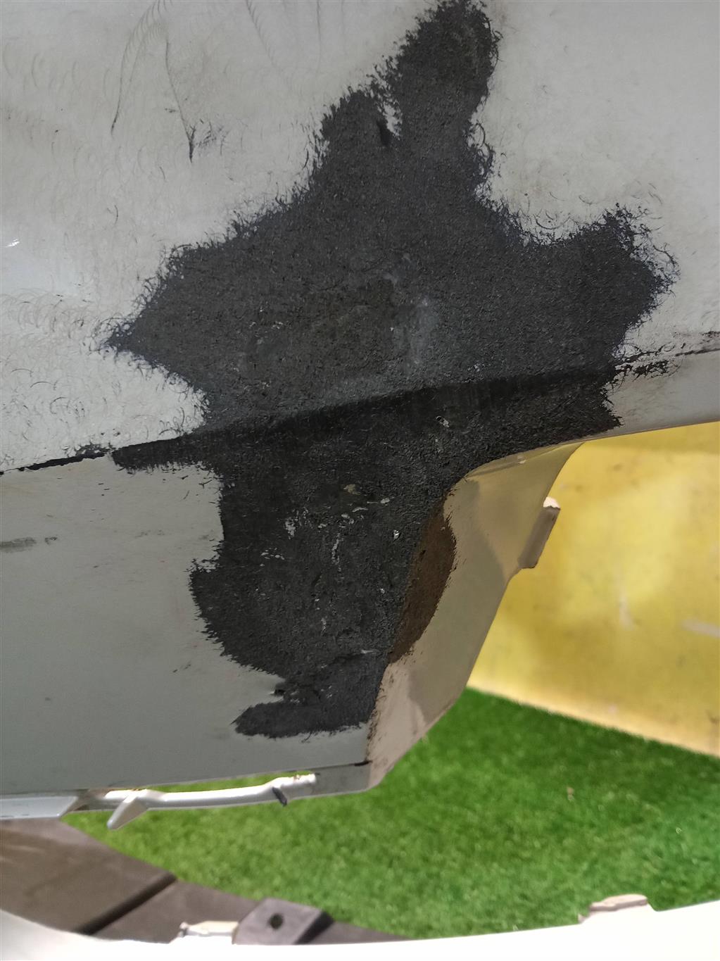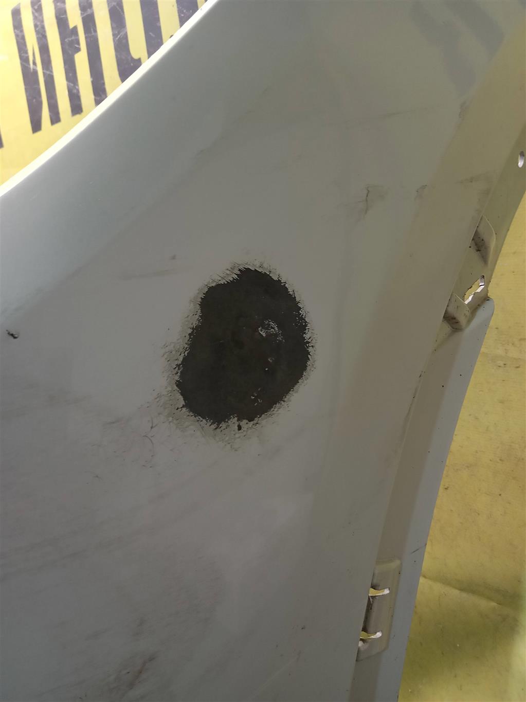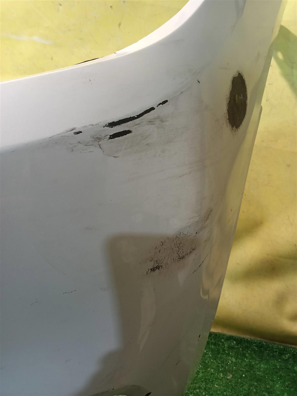 С отверстиями под парктроники, под омыватели фар. Имеет притертости, царапинки. Был проведен ремонт.