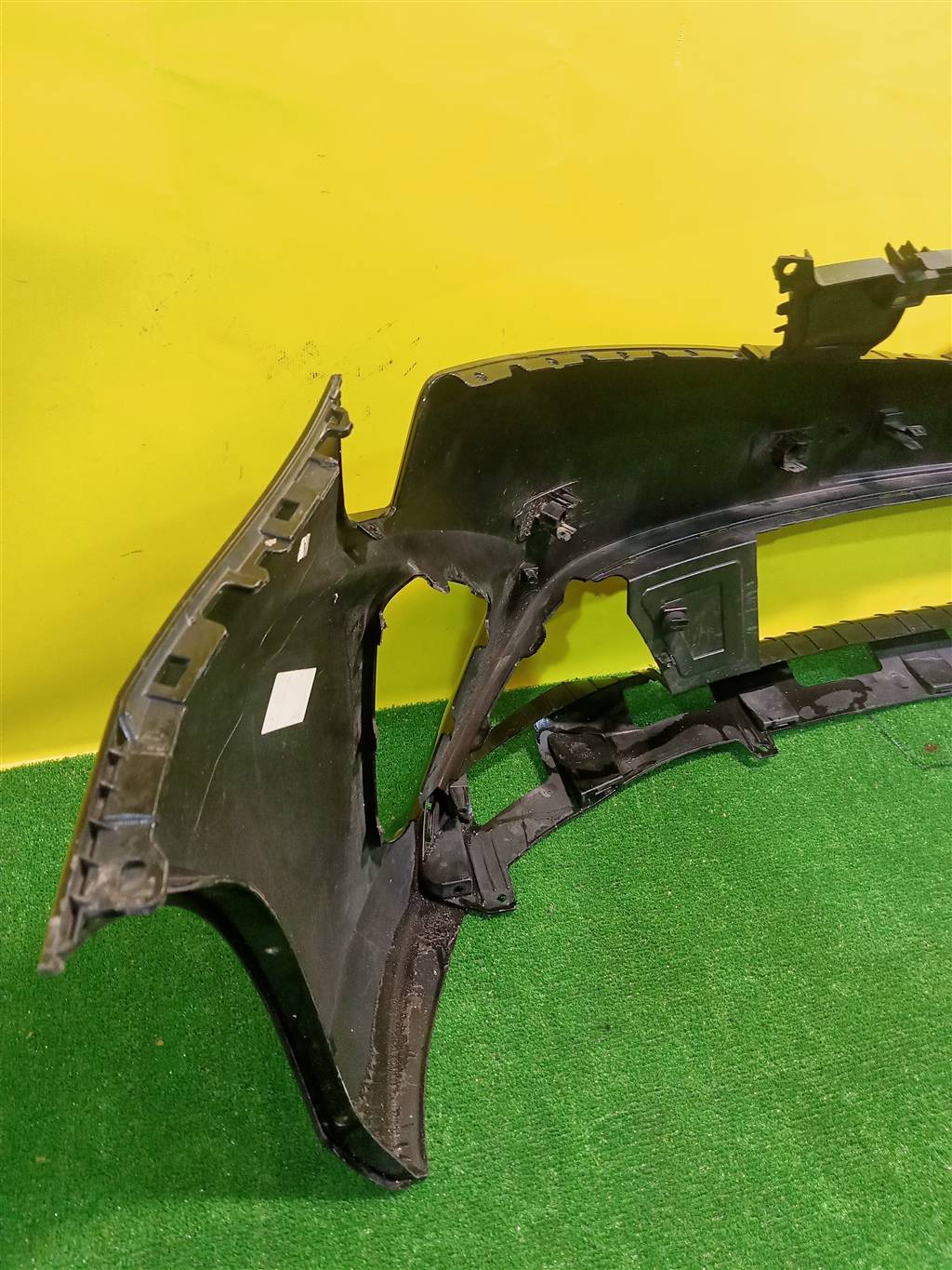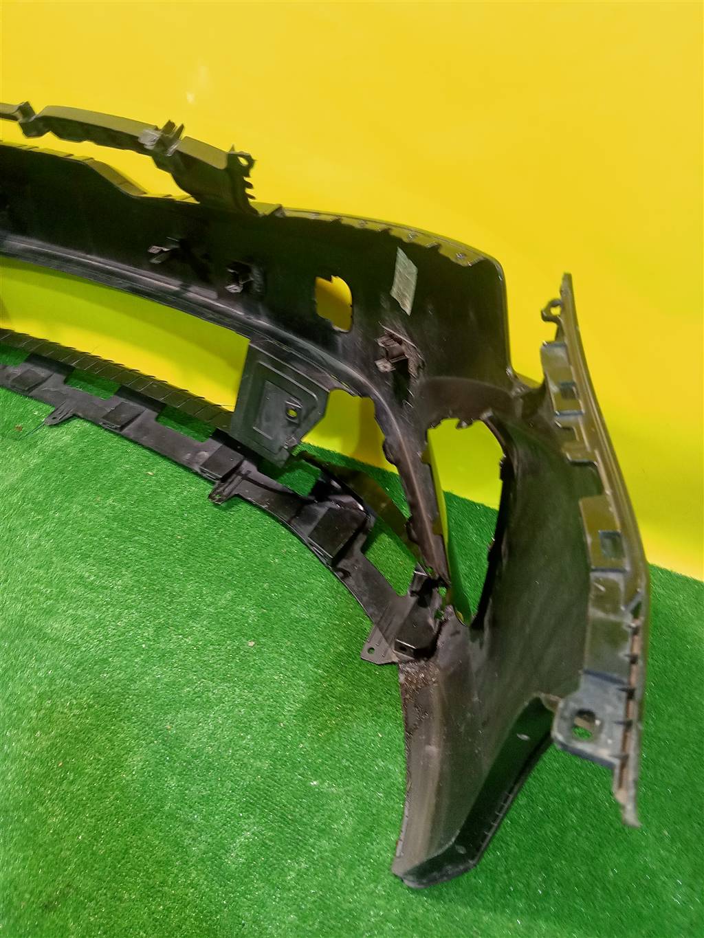 С отверстиями под парктроники, имеет царапины, примятость.